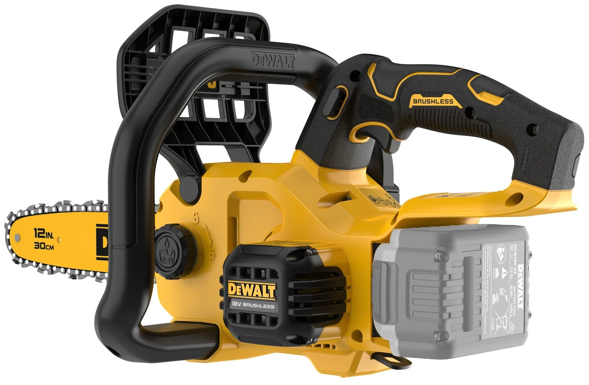 Пила ланцюгова акумуляторна DeWALT, XR Li-Ion 18В шина 30см ланцюг Oregon 3/8, 1.1 мм 2.7кг без АКБ