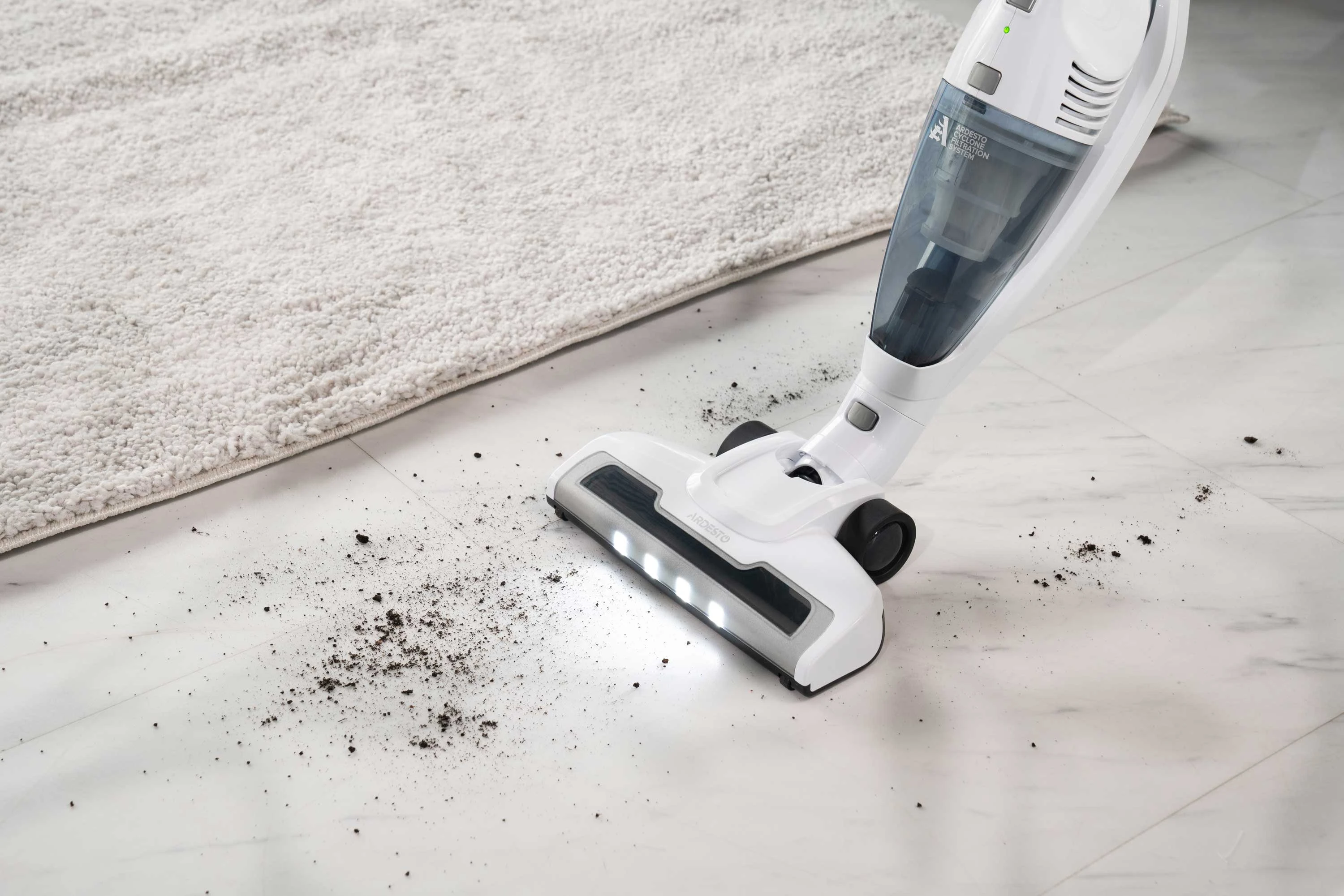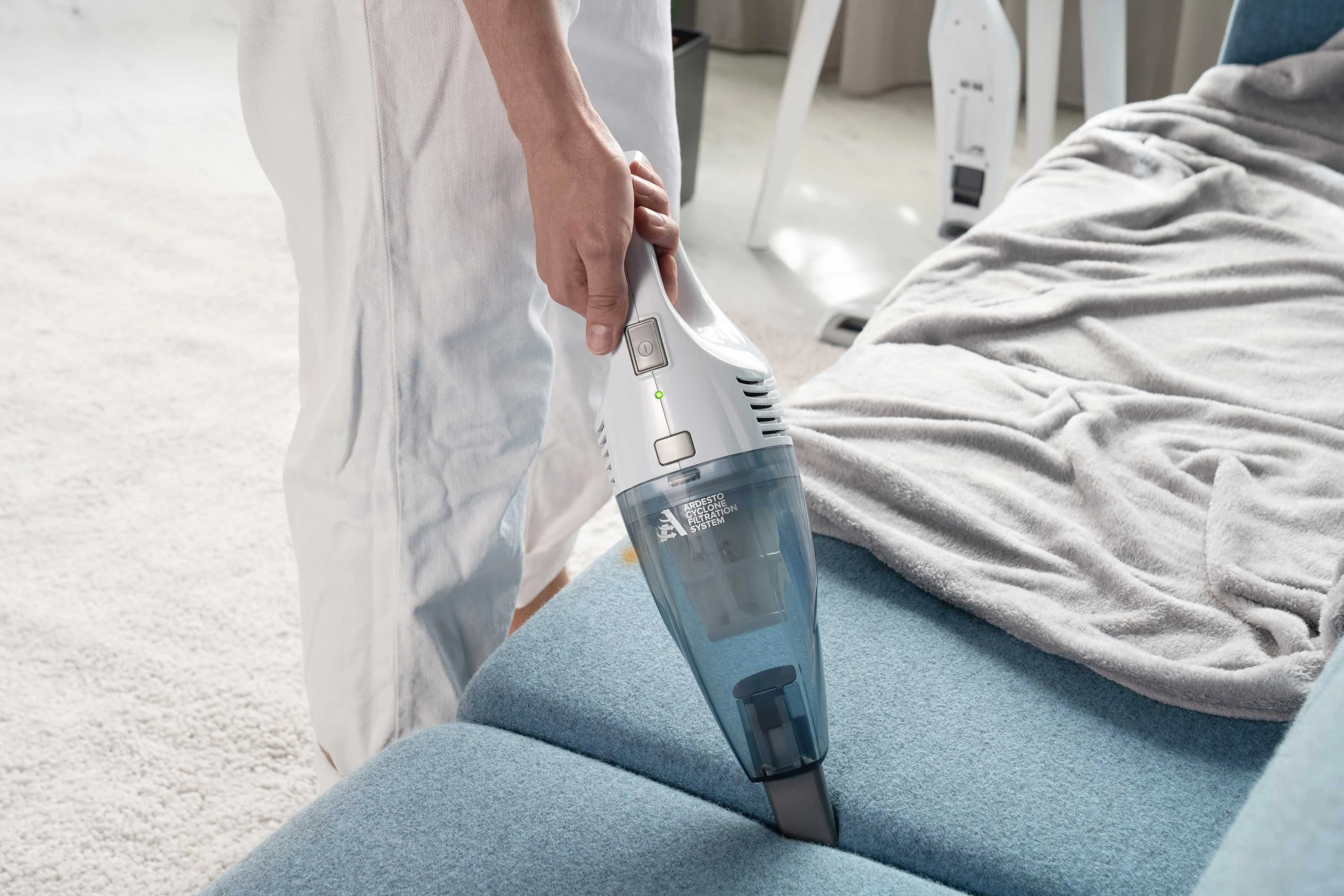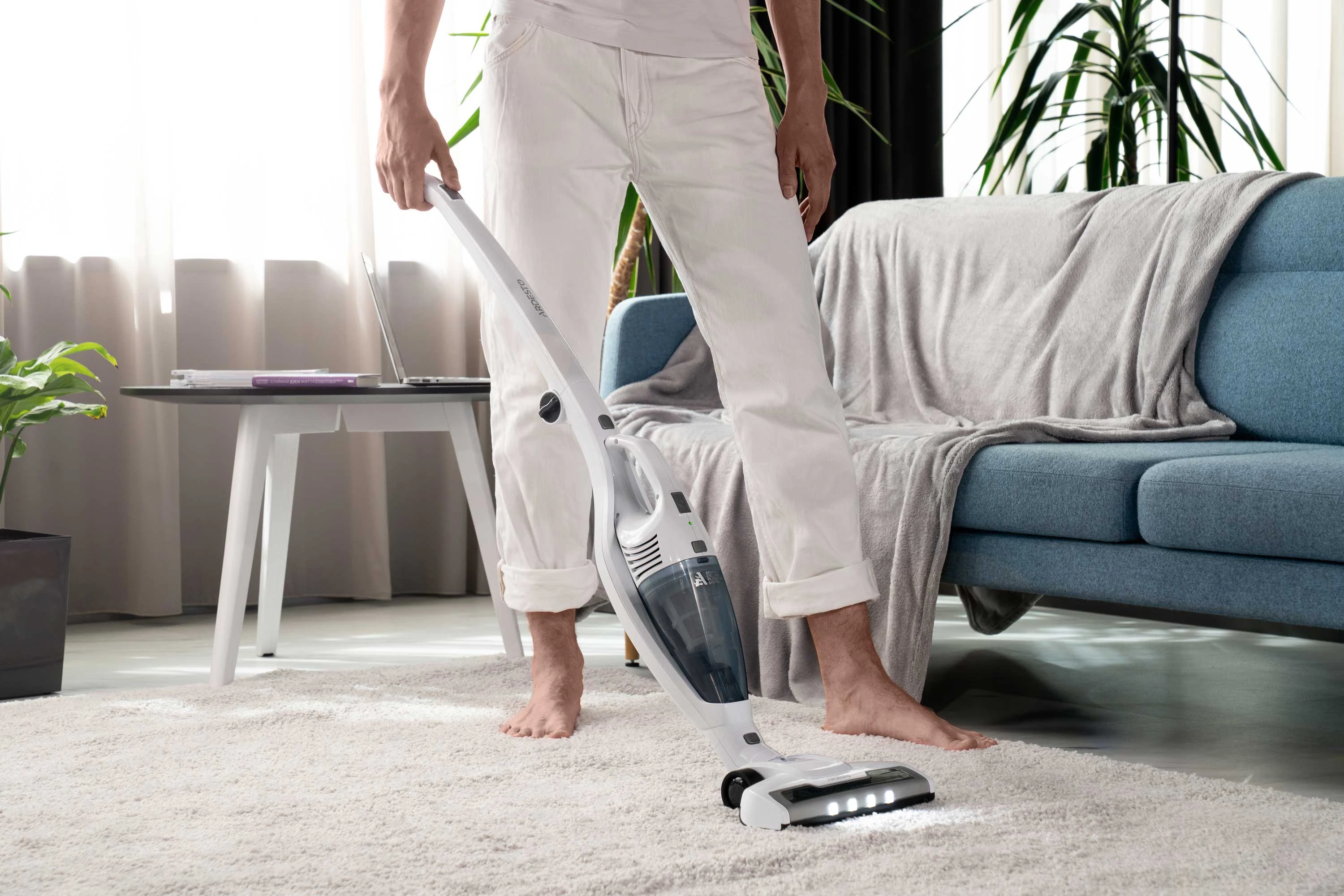 Бездротовий акумуляторний пилосос із потужністю всмоктування 29 Вт допоможе ефективно прибрати приміщення, адже оснащений HEPA-фільтром, що затримує дрібнодисперсні часточки та пил. Неспростовною перевагою, зокрема для людей, які страждають від алергії на домашній пил, є те, що під час збирання сміття, пилосос ще й очищує повітря. У комплекті постачання є кріплення для вертикального встановлення на стіну та дві насадки: для прибирання важкодоступних місць та турбощітка. Неспростовною перевагою за умов перебоїв в електропостачанні є можливість автономної роботи: у турборежимі – 17 хв., у звичайному – 35 хв. Крім того, конструкцією передбачено знімний ручний модуль для швидкого прибирання.