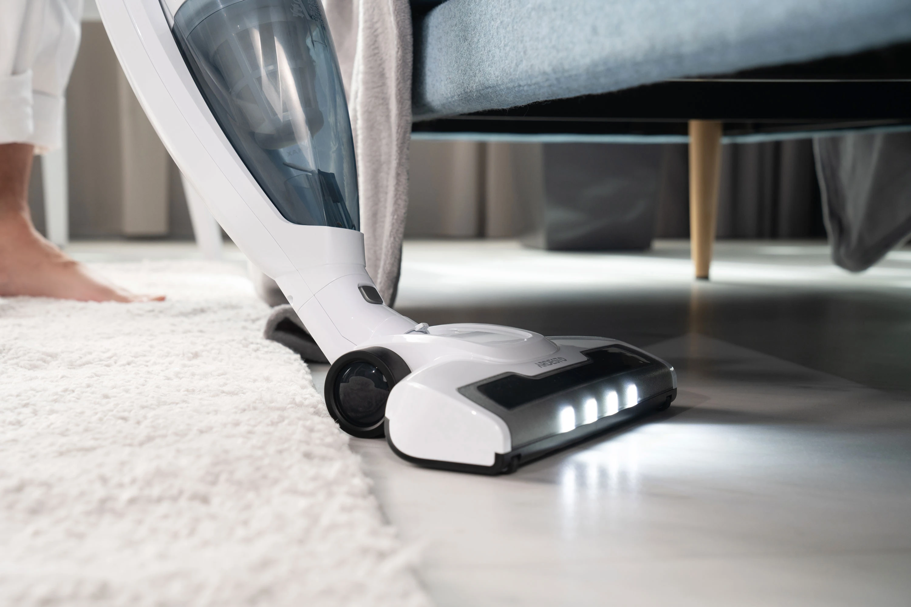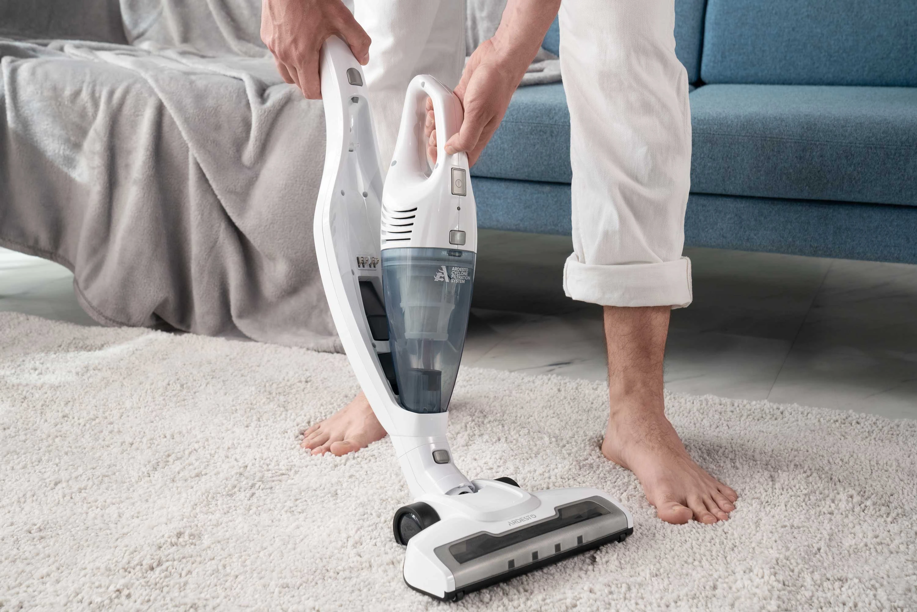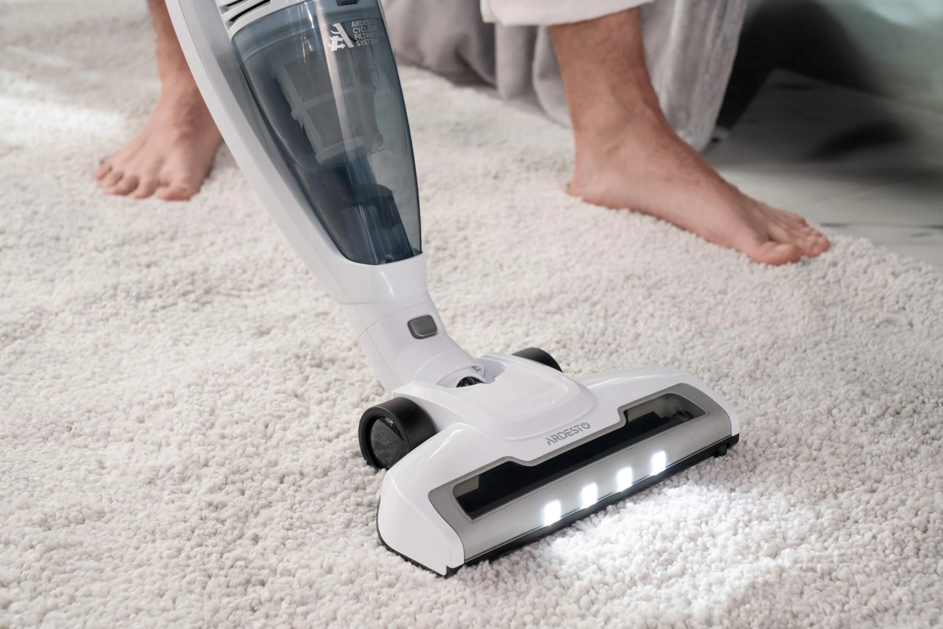 Бездротовий акумуляторний пилосос із потужністю всмоктування 29 Вт допоможе ефективно прибрати приміщення, адже оснащений HEPA-фільтром, що затримує дрібнодисперсні часточки та пил. Неспростовною перевагою, зокрема для людей, які страждають від алергії на домашній пил, є те, що під час збирання сміття, пилосос ще й очищує повітря. У комплекті постачання є кріплення для вертикального встановлення на стіну та дві насадки: для прибирання важкодоступних місць та турбощітка. Неспростовною перевагою за умов перебоїв в електропостачанні є можливість автономної роботи: у турборежимі – 17 хв., у звичайному – 35 хв. Крім того, конструкцією передбачено знімний ручний модуль для швидкого прибирання.