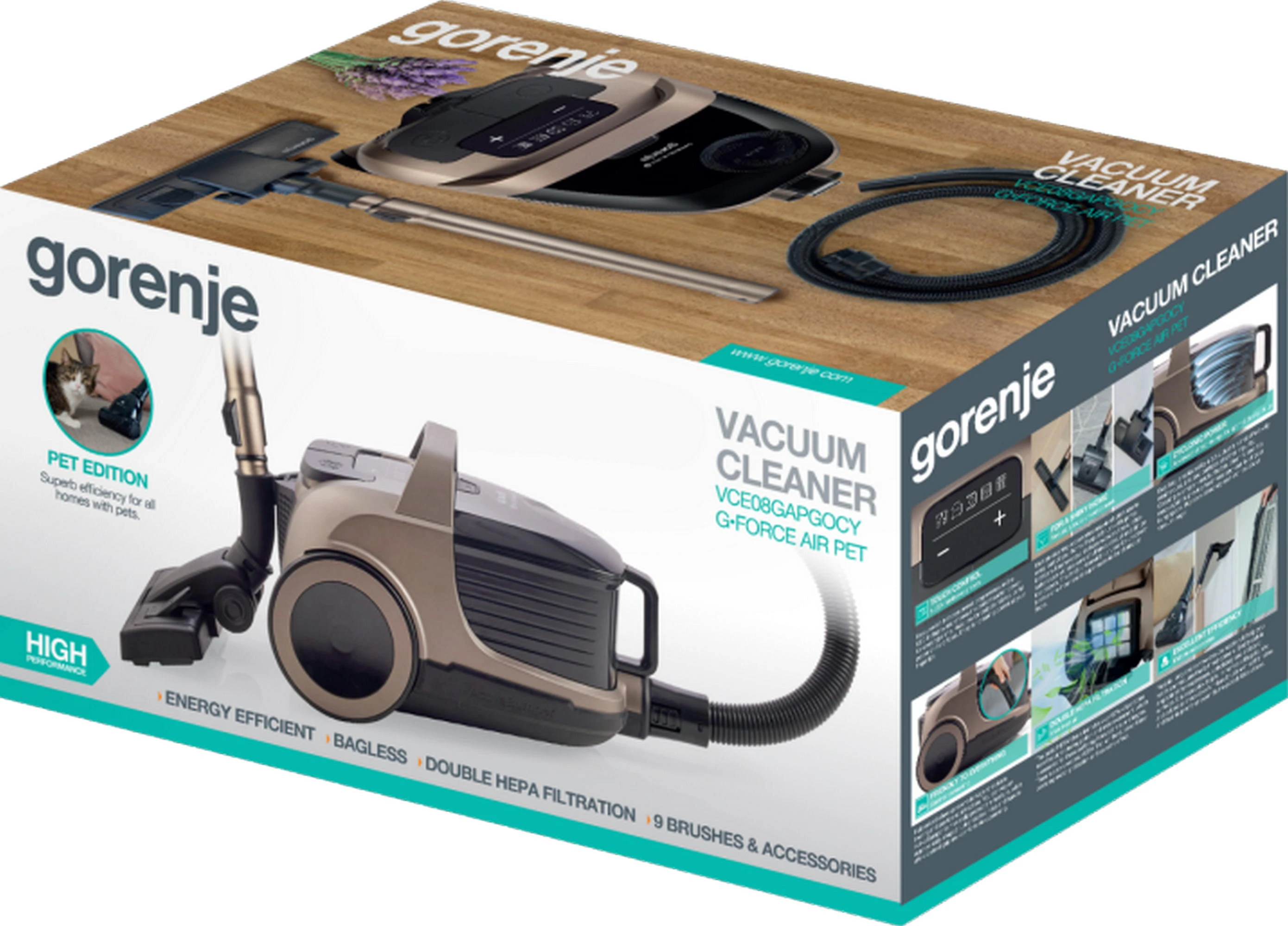 Пилосос Gorenje контейнерний, 850Вт, конт пил -3.3л, HEPA, телескоп трубка, сенсорне упр, бронзовий