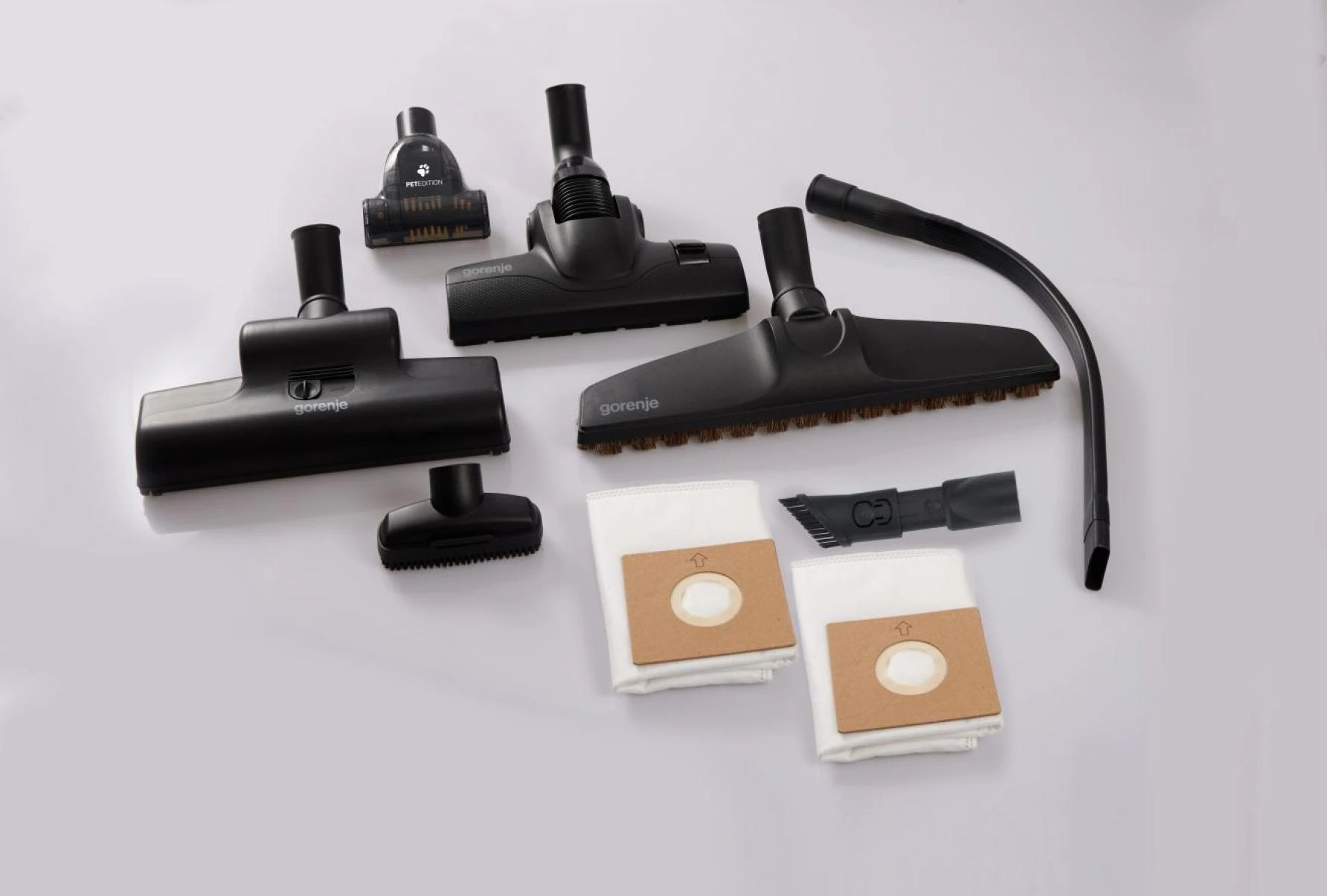 Пилосос Gorenje мішковий, 890Вт, 4л, HEPA, телескоп, LED-дисплей, турбощітка, чорний