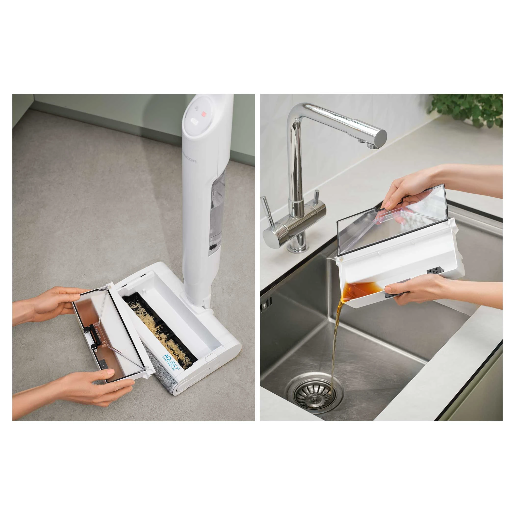 Sencor SVW 3500WH Aquino — безпровідна миюча підлогомийка для твердих покриттів. Оснащена системою Power Spin Aqua 8 та резервуаром для води 0,4 л. Працює до 40 хвилин без підзарядки та важить лише 2,8 кг. Має HEPA-фільтр і функцію самоочищення щітки.