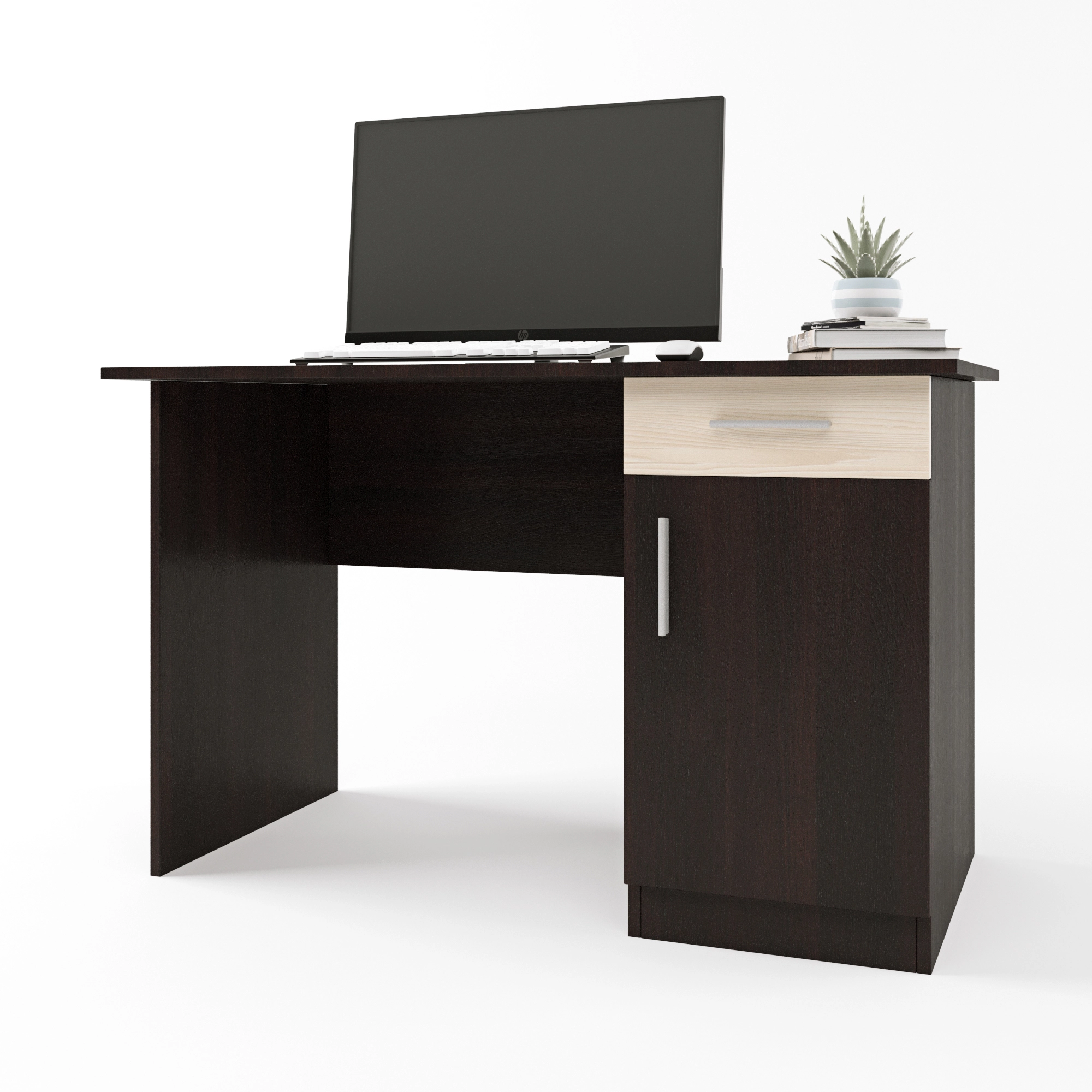Модель має оптимальні розміри для комфортної роботи — ширина 110 см, глибина 55 см, висота 75 см. Виготовлений із якісної ДСП від Swiss Krono, стіл обладнаний зручним висувним ящиком і стаціонарною тумбою. Ідеально підходить для використання як з ноутбуком, так і зі стаціонарним комп’ютером.