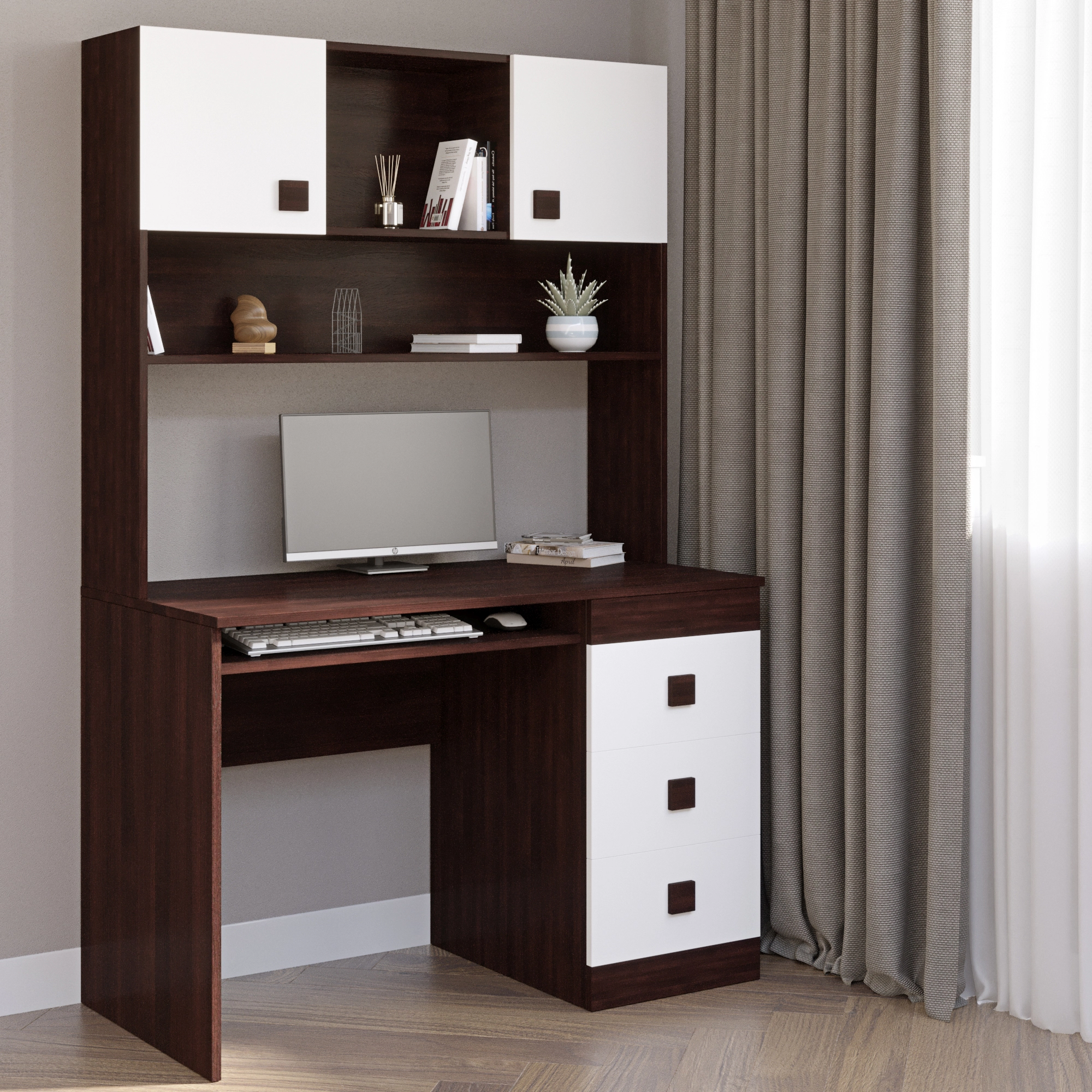 Письмовий стіл з надбудовою Еверест Соната венге темний + білий (DTM-2628)