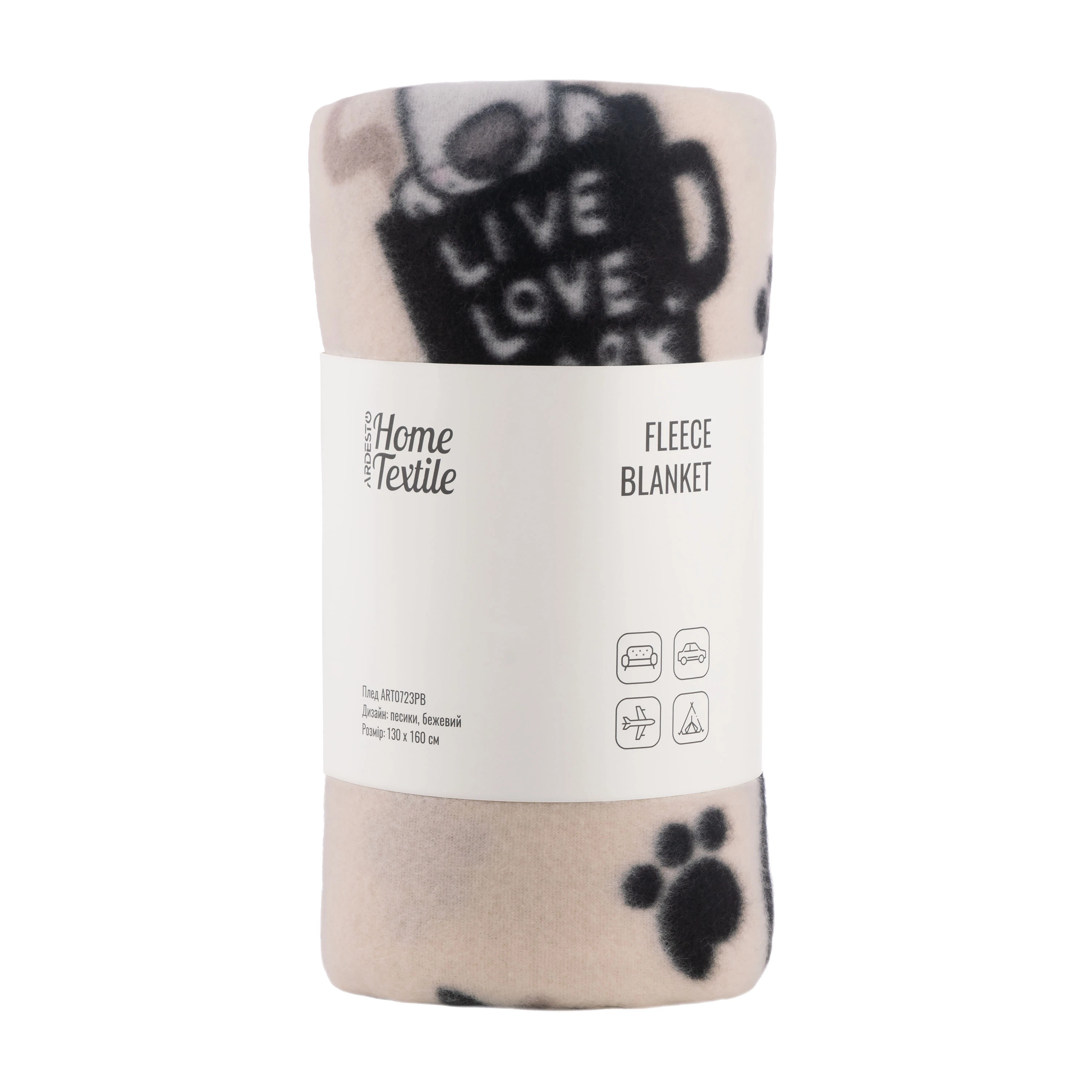 Плед ARDESTO Fleece 130x160см, 100% поліестер, песики, бежевий