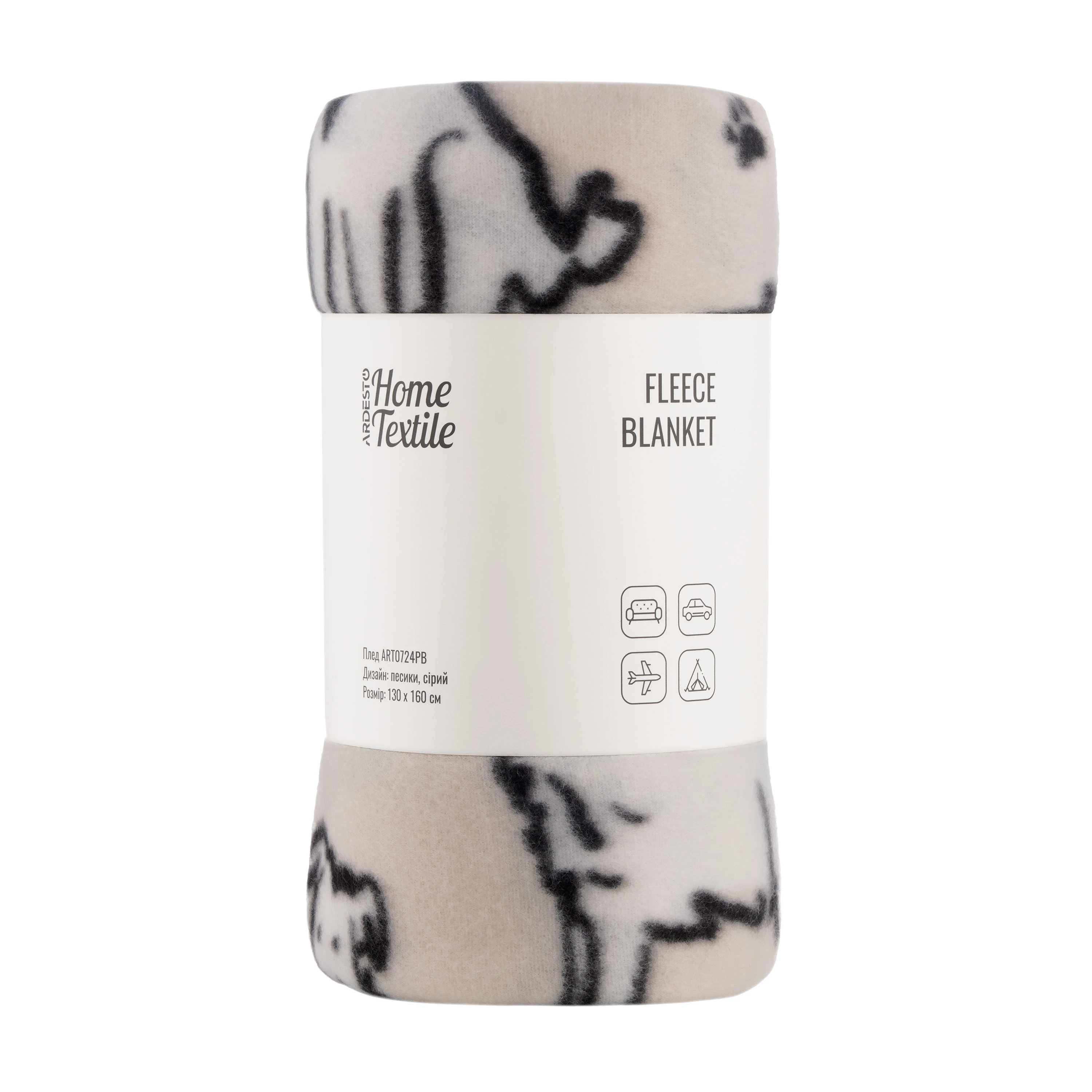 Плед ARDESTO Fleece 130x160см, 100% поліестер, песики, сірий