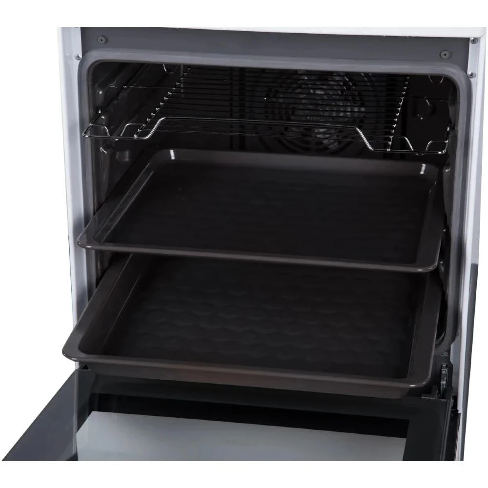 Комбінована плита з газовою варильною поверхнею та електричною духовкою об’ємом 62 л. Має 8 програм приготування, включаючи гриль, конвекцію та швидкий розігрів. Варильна поверхня обладнана чавунними решітками і електрозапалюванням у ручках.