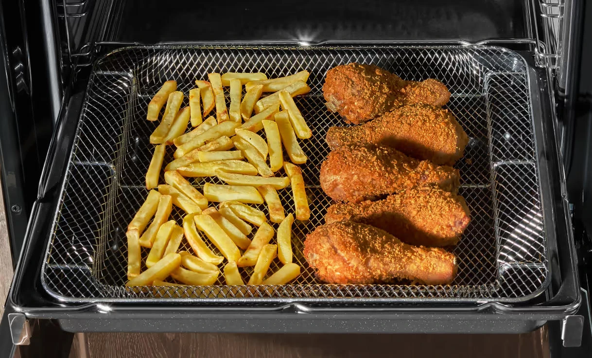 Комбінована плита Hansa FCMX583291 поєднує електричну духовку об’ємом 65 л та газову варильну поверхню з чавунними решітками. Вона оснащена вісьмома режимами приготування, включаючи гриль і функцію швидкого розігріву, що дозволяє готувати страви швидше. Каталітична система очищення спрощує догляд за духовкою.