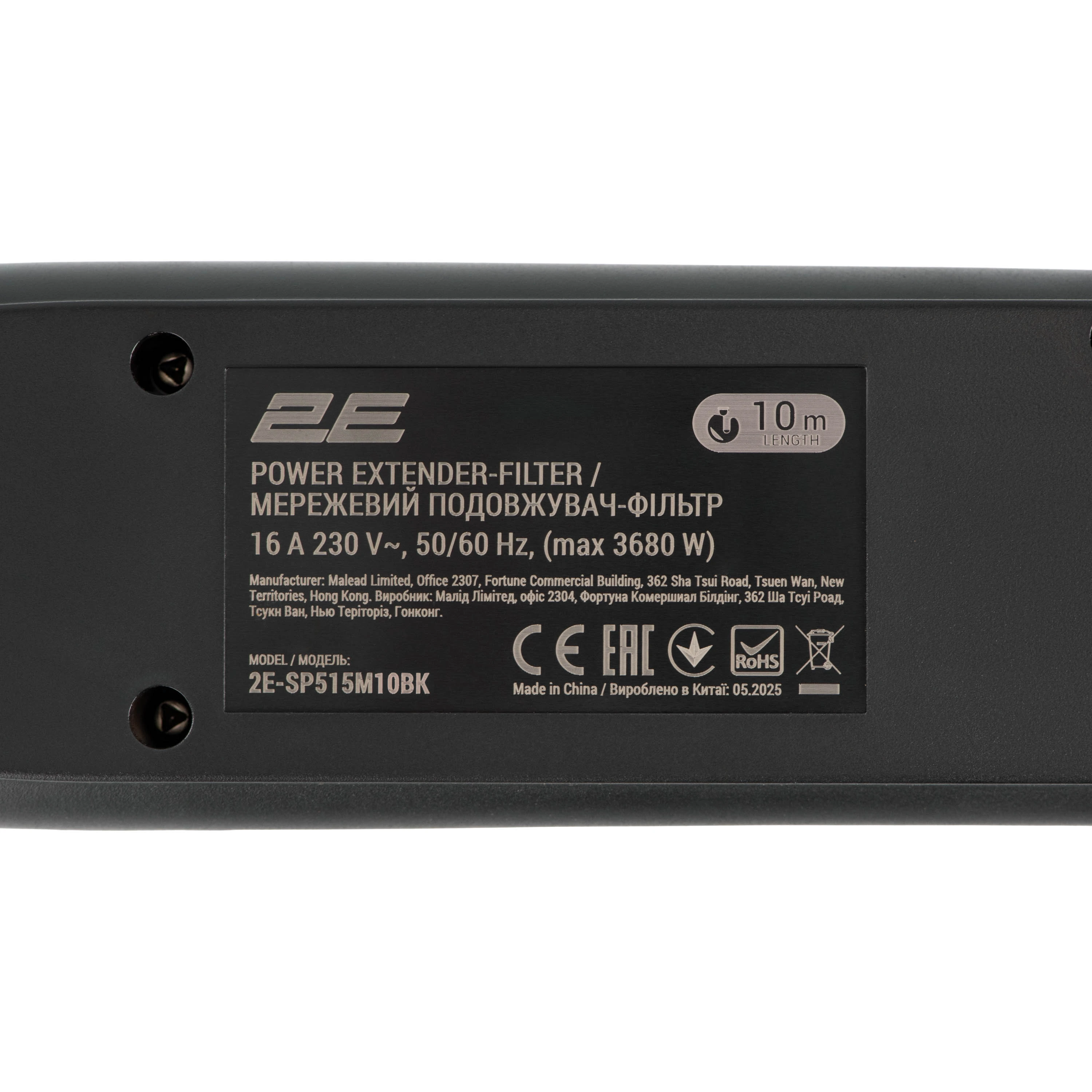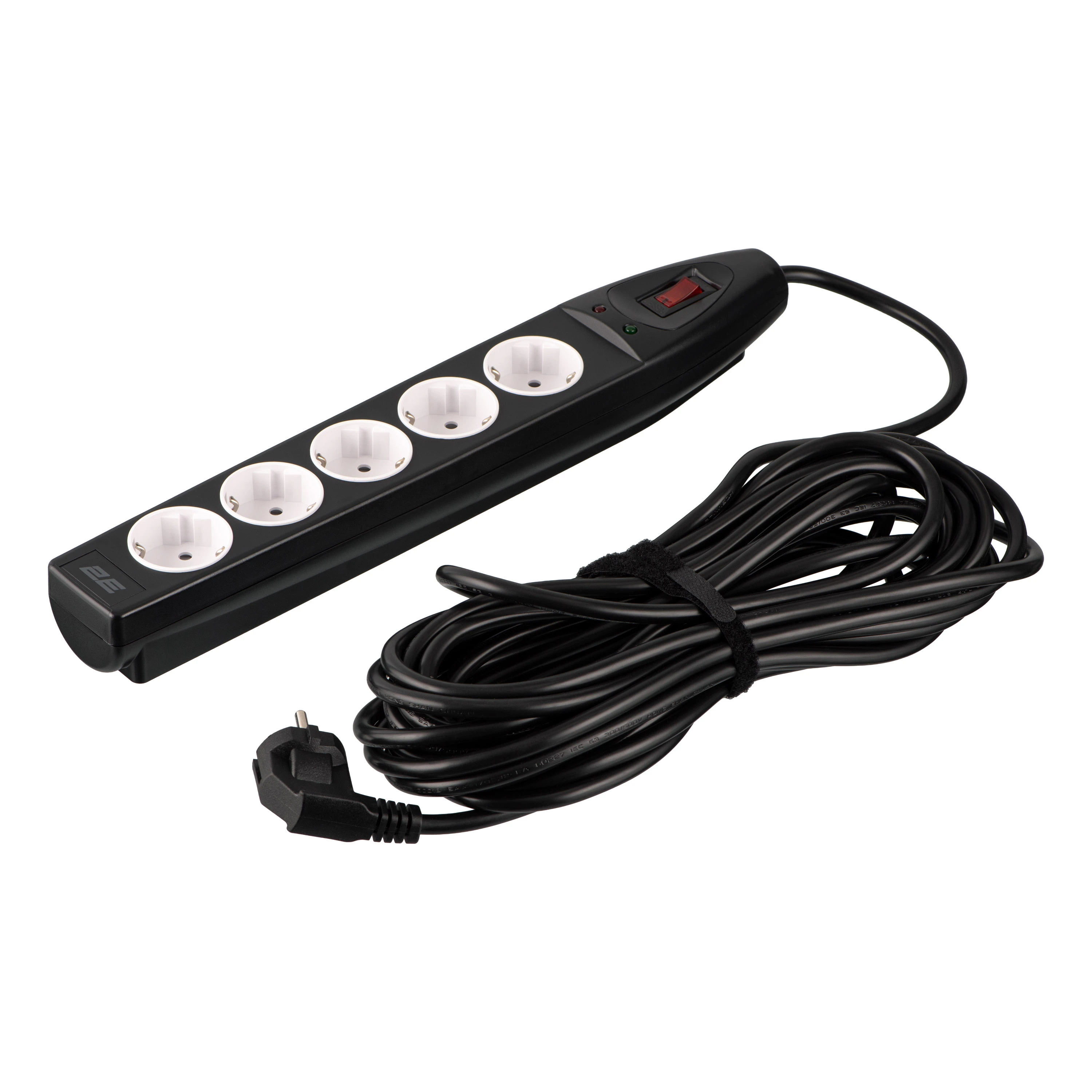 Подовжувач мережевий 2E 10м, 5xТипF, 16A, фільтр, чорний