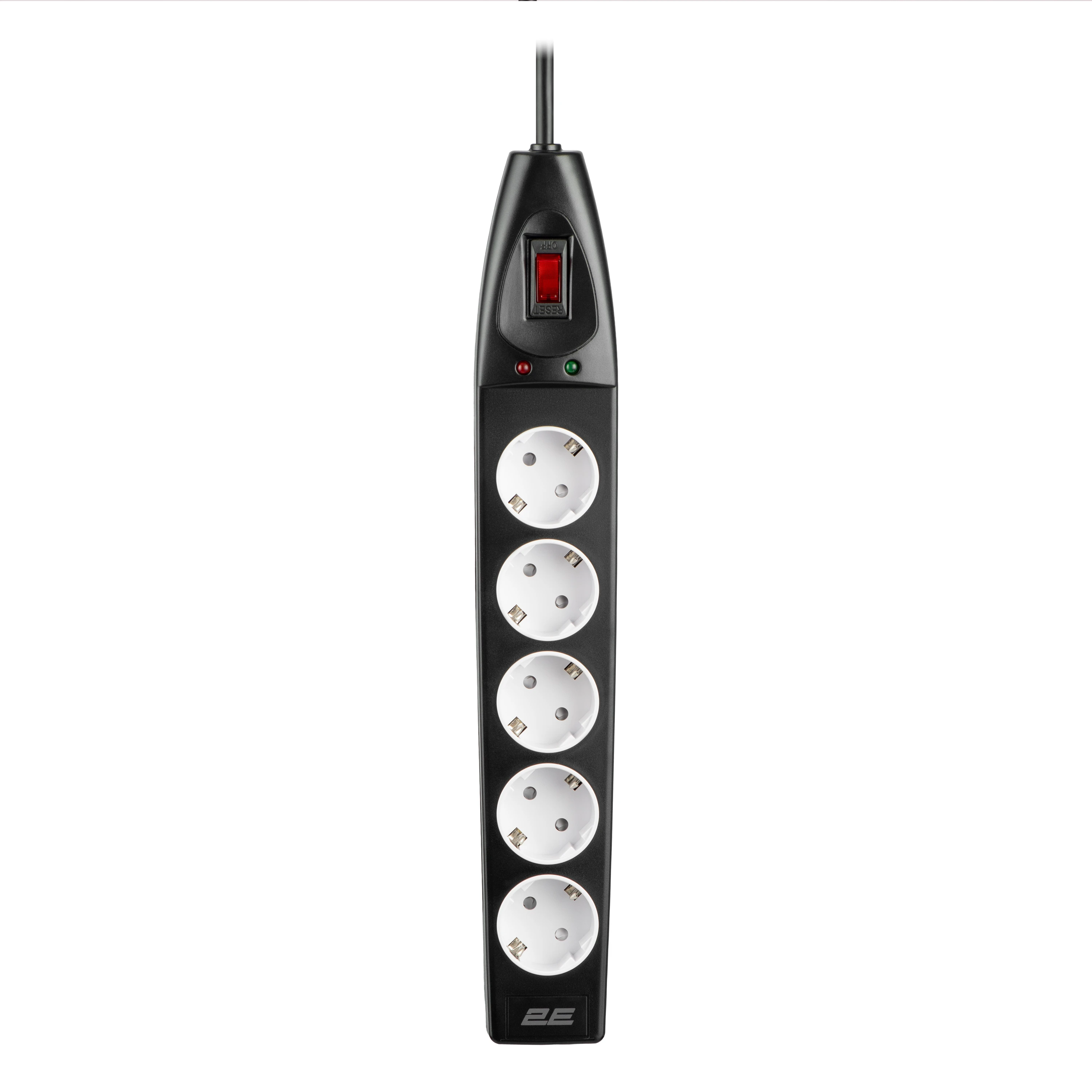 Мережевий фільтр 2E SP515 із кабелем 10 м гарантує безпечне підключення техніки навіть на відстані. П’ять розеток Type-F (Schuko) із кутовим розташуванням (45°) дають змогу зручно під’єднувати кілька пристроїв одночасно. Захист від коливань напруги забезпечує варистор (350 Дж), який блокує живлення в разі перевантаження за струмом. Автоматичний вимикач миттєво реагує в разі замикання, а два LED-індикатори інформують щодо стану заземлення і стабільності мережі. Для додаткової безпеки передбачено захисні шторки від дітей, а корпус із вогнетривкого PC-пластику витримує вплив високої температури, мінімізуючи ризик займання. Дріт H05VV-F із перерізом 3 × 1,5 мм² зі 100 % міді гарантує довговічність навіть за максимального навантаження 3 680 Вт. Крім того, подовжувач має кріплення на зворотному боці, тому його можна встановлювати як горизонтально на підлозі, так і вертикально на стіні.