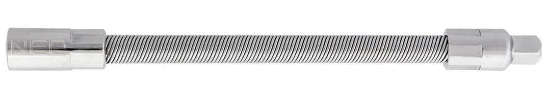 Гнучкий подовжувач 1/4" NEO довжиною 140 мм. Виготовлений із міцної хромованадієвої сталі. Дозволяє працювати у важкодоступних місцях. Гарантією високої якості та надійності є сертифікат TÜV Rheinland. Бренд NEO виправдовує очікування професіоналів.
