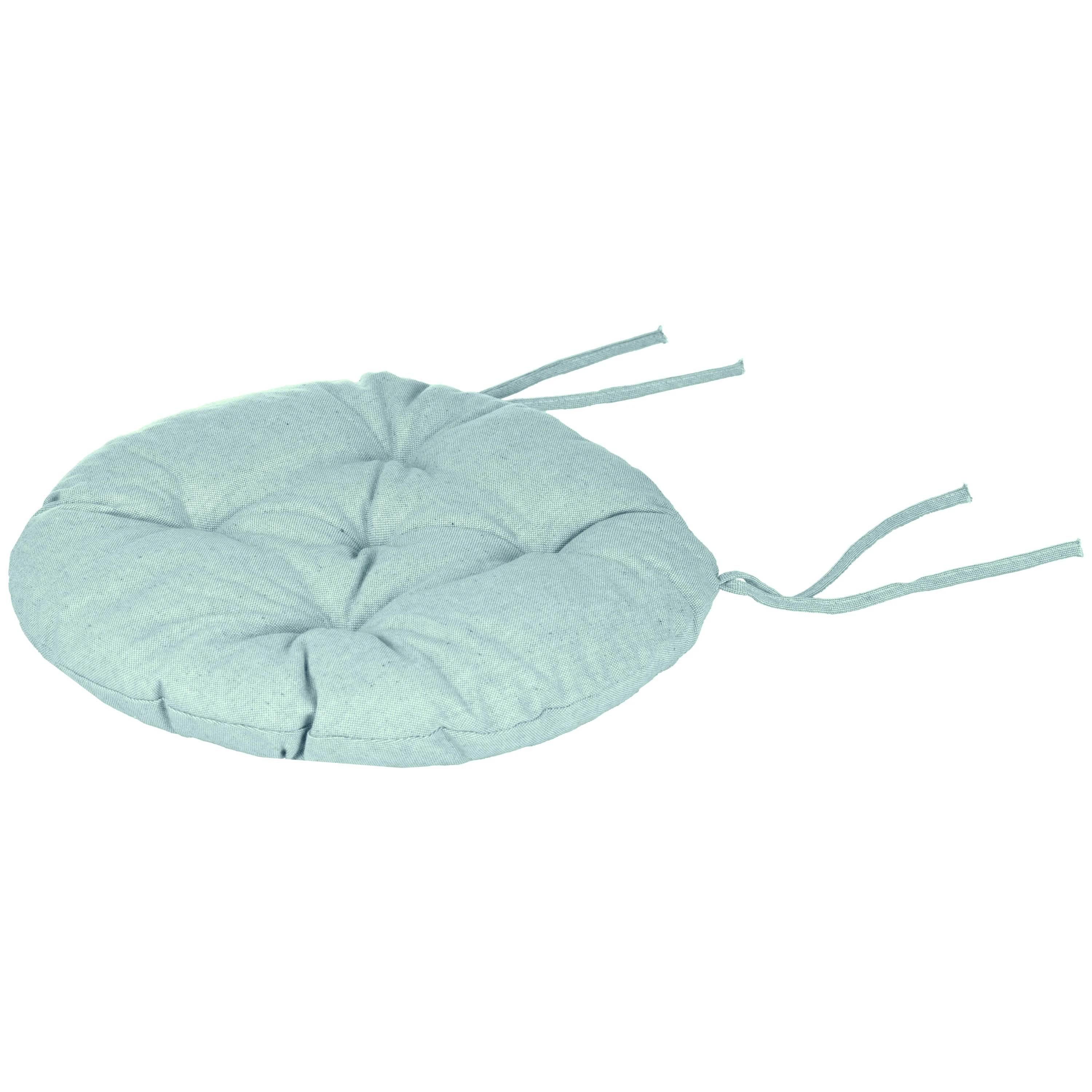 Подушка для стільця діаметром 40 см забезпечить не лише зручність, а й допоможе додати яскравих акцентів інтер’єру, адже виконана в стильному кольорі аквамарин. Чохол вироблений зі 100 % бавовни, тоді як наповнювач складається з холлофайберу (50 %) та поліпропілену (50 %), що зумовлює комфорт. Для збереження первинного вигляду подушки варто дотримуватися рекомендацій щодо догляду: прати в машині за делікатного режиму (30 °C); не сушити в сушильній машині, а тільки у вертикальному положенні; прасувати за температури до 150 °C; також заборонено відбілювання та хімчистка.