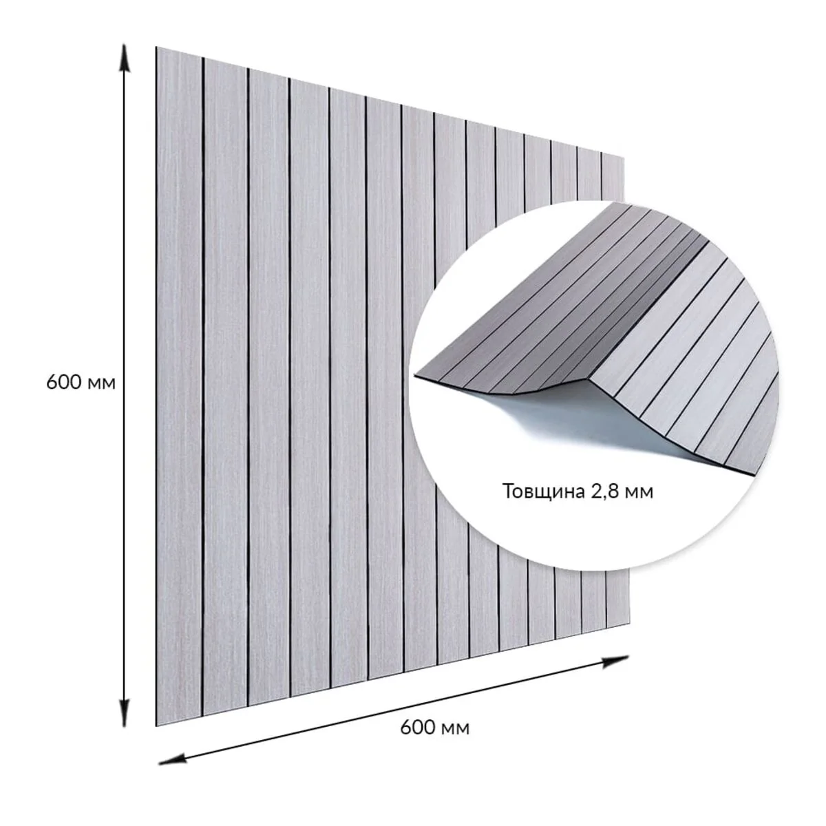 Площа покриття: 600х600 – 0,36 м², 600х3000 мм – 1,8 м²