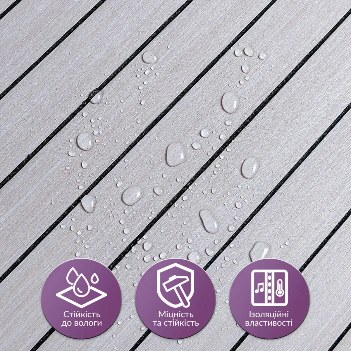 • Легкий догляд: Вінілові рейки легко миються, не вимагають спеціальних засобів для очищення і не вбирають бруд.