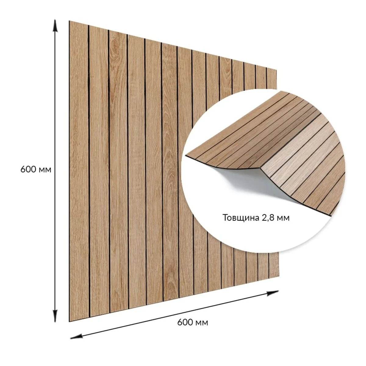 Площа покриття: 600х600 – 0,36 м², 600х3000 мм – 1,8 м²