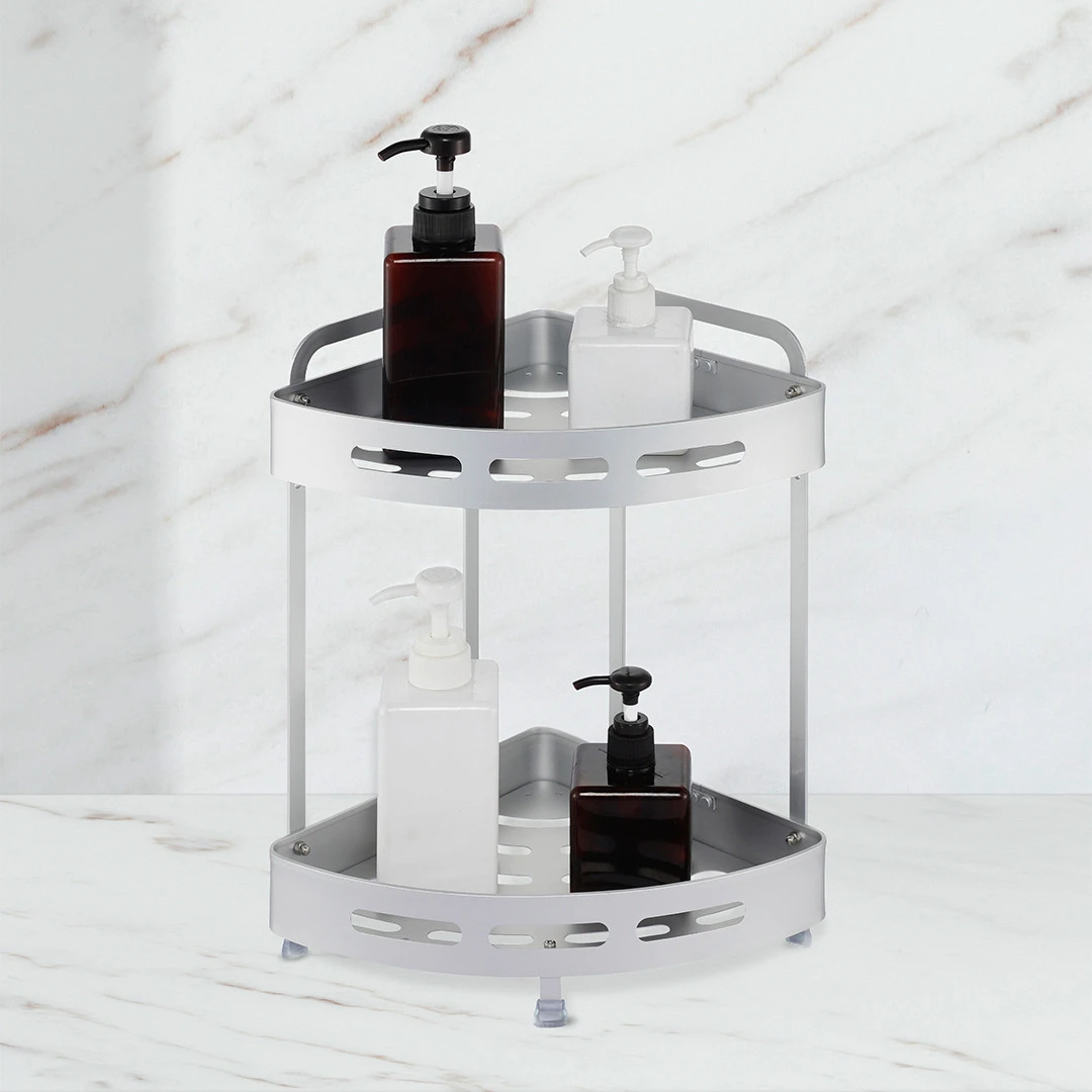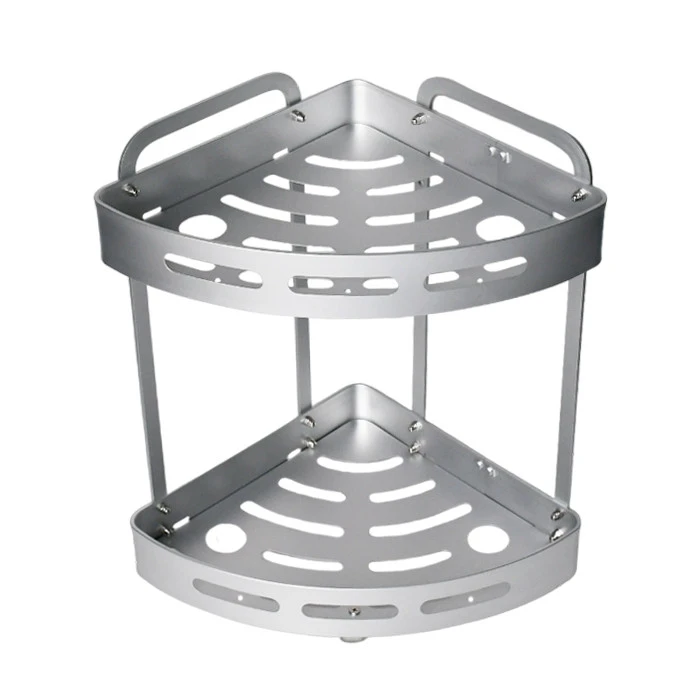 Легка та міцна алюмінієва двоярусна кутова полиця ідеально підійде для компактного розміщення засобів у ванній кімнаті. Стійка до корозії та вологи, проста в догляді.