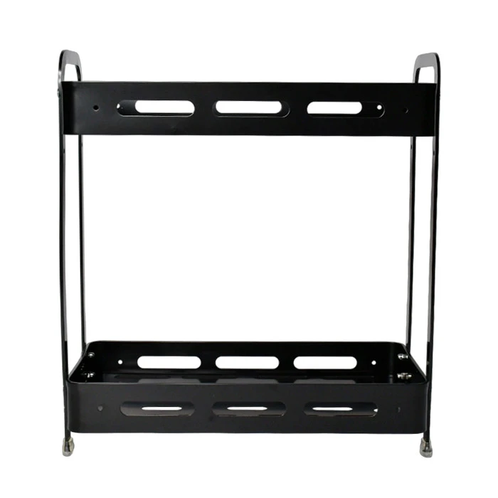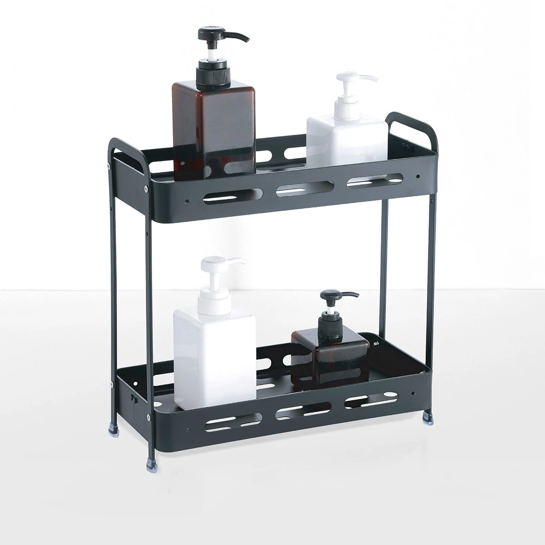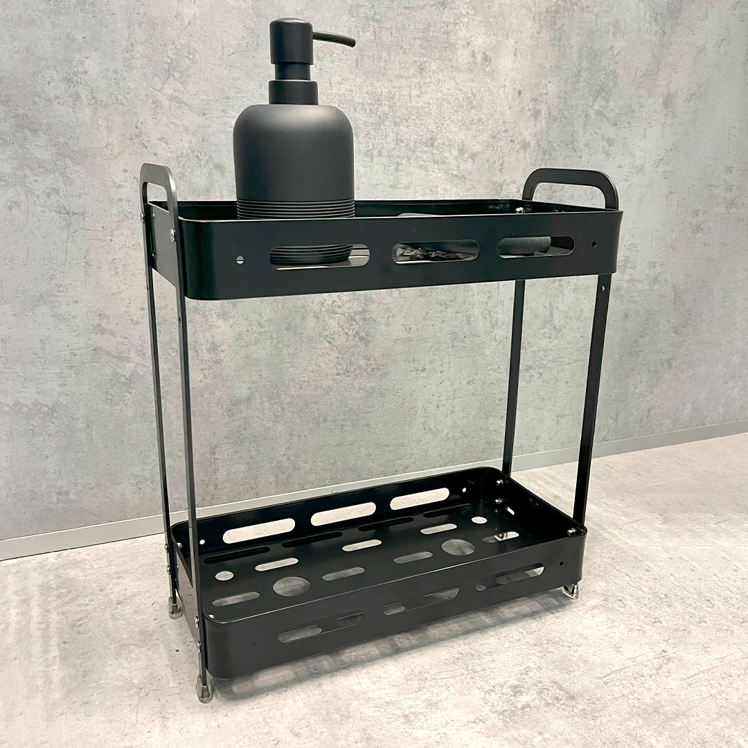 Двоярусна полиця з матовим чорним покриттям — стильний спосіб організувати простір. Вона гармонійно впишеться у сучасний інтер’єр і допоможе розмістити косметику, побутові дрібниці чи кухонне приладдя. Міцна конструкція витримує вологість, а вишуканий чорний колір підкреслює елегантність.