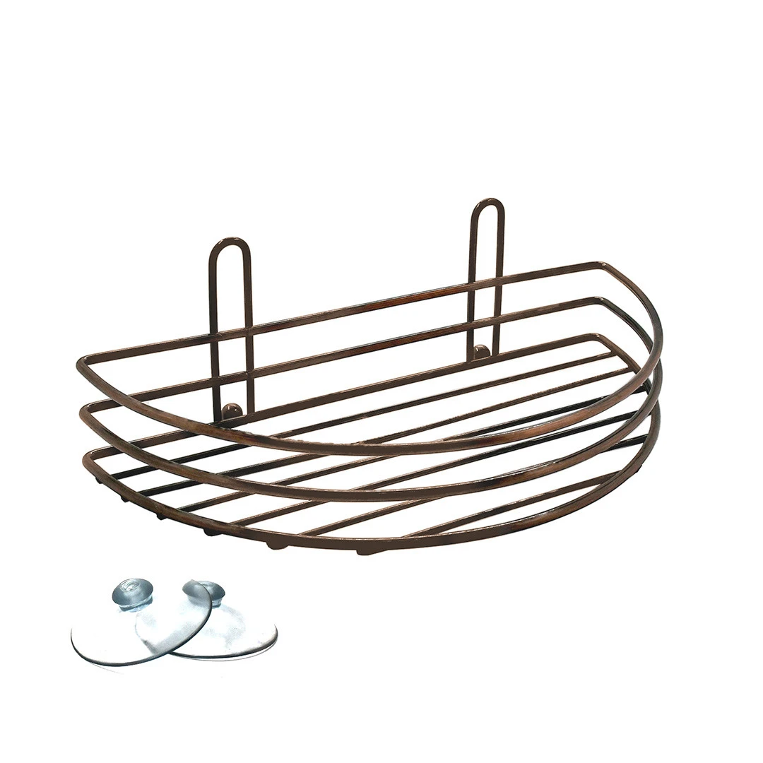 Стильна полиця з покриттям «антична мідь» підкреслить інтер’єр ванної кімнати. Виготовлена з міцних матеріалів, стійких до вологи та корозії. Дві присоски забезпечують надійне кріплення без пошкодження стін.