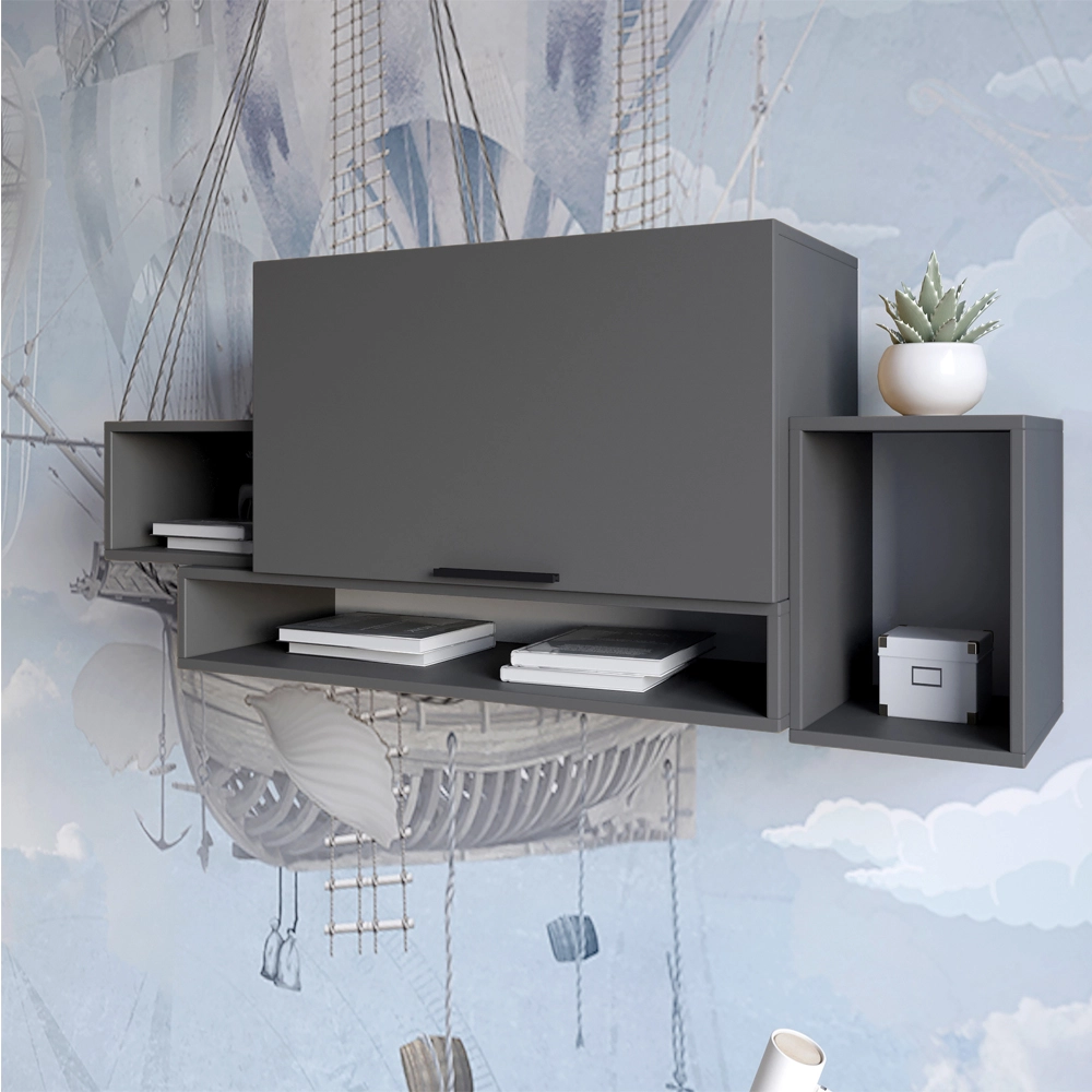 Модель оснащена несколькими открытыми секциями и одним закрытым отсеком, что позволяет удобно размещать книги, декор, аксессуары или документы, поддерживая порядок и эстетичный внешний вид комнаты. Изготовленная из долговечной ламинированной ДСП Swiss Krono, полка устойчива к повреждениям и проста в уходе.