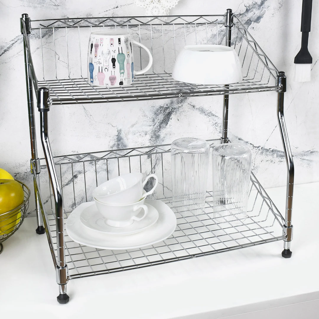 Стильне й функціональне рішення для кухні. Два рівні дозволяють ефективно сушити тарілки, чашки і столові прибори, зберігаючи порядок і економлячи простір. Матеріали - сталь із хромованим покриттям та пластик; підходить для установки на стільниці.