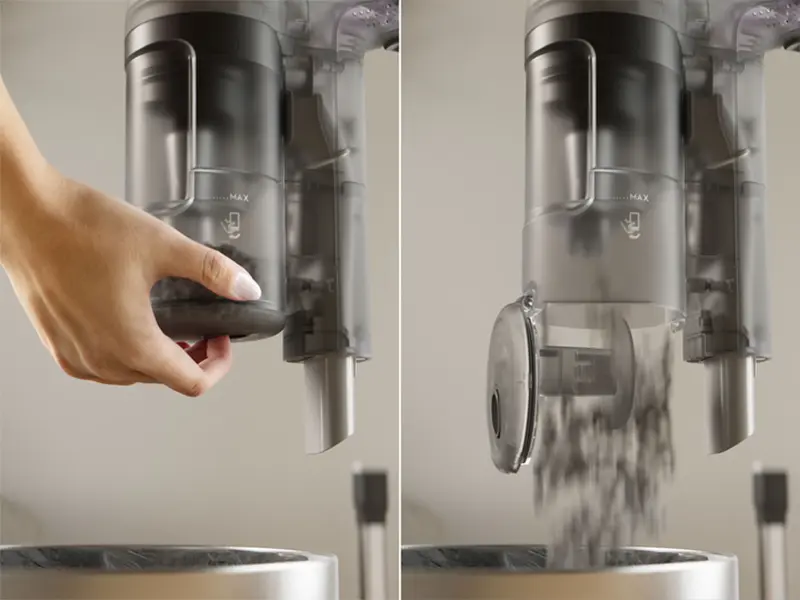 Легко опорожняйте пол-литровый контейнер одним нажатием кнопки - без пылевых облаков и беспорядка. Система опорожнения пилы через нижнюю крышку упрощает процесс, обеспечивая чистоту и свежесть дома без лишних усилий.