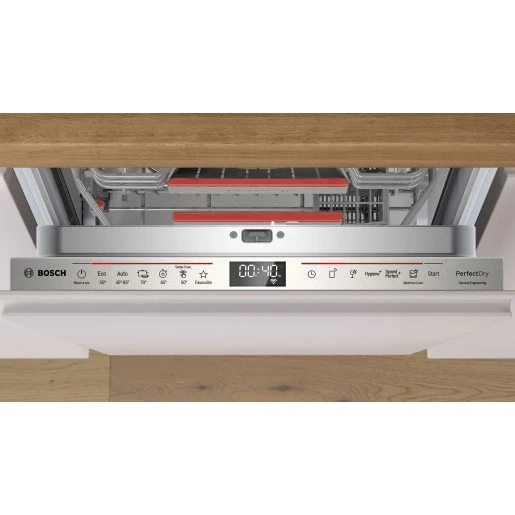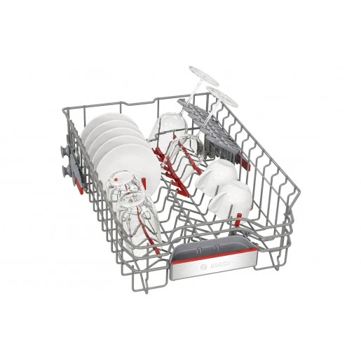 Вбудована посудомийна машина Bosch завширшки 45 см розрахована на 10 комплектів посуду. Дисплей відображає залишковий час і параметри програми. Третій кошик підвищує місткість та зручність розміщення столових приборів. Технологія Zeolith® забезпечує ефективне сушіння з оптимальним споживанням електроенергії. Двигун EcoSilence Drive працює тихо та стабільно.