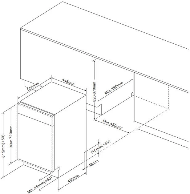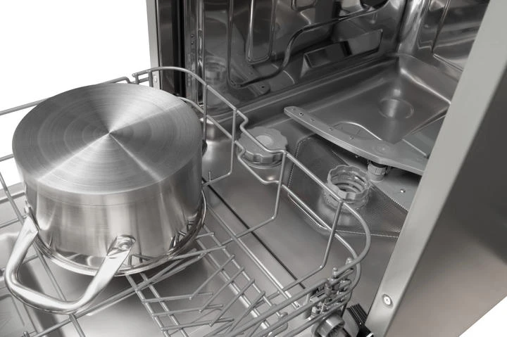 Вбудована посудомийна машина Hansa ZIM435H на 9 комплектів із 5 програмами забезпечує ефективне миття та сушіння класу A. Має функцію половинного завантаження, відкладений старт (3/6/9 год) та додаткове сушіння. Споживає лише 9 л води за цикл, рівень шуму – 49 дБ.