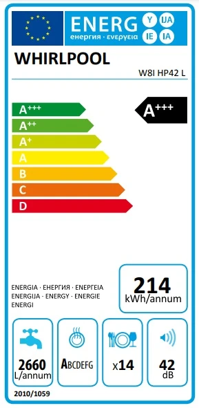 Посудомийна машина Whirlpool вбудована, 14компл., A+++, 60см, дисплей, 3й кошик, білий