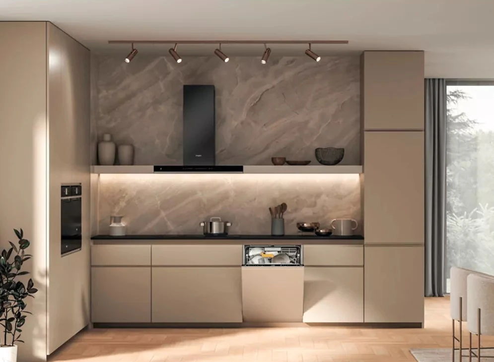 Відкрийте переваги найбільшої, третьої полиці із потужними водяними струменями. Третя полиця SpaceClean ідеально спроектована і розташована під таким кутом, що дозволяє без зусиль завантажувати горнятка, глибокі миски та високі склянки до 13 см і звільнити додатковий простір у середньому кошику. Крім цього, SpaceClean забезпечує надзвичайну ефективність очищення завдяки вбудованим форсункам, які перетворюють її на зону додаткового миття, де потужні водяні струмені точно дістануться кожного предмету посуду. Природне сушіння та економія електроенергії. Наприкінці циклу система NaturalDry автоматично відчиняє дверцята посудомийної машини, забезпечуючи природну циркуляцію повітря всередині камери та рівномірне сушіння посуду. Відмінна чистота та значна економія електроенергії: до 70% кращі результати та до 15% менше енерговитрат.