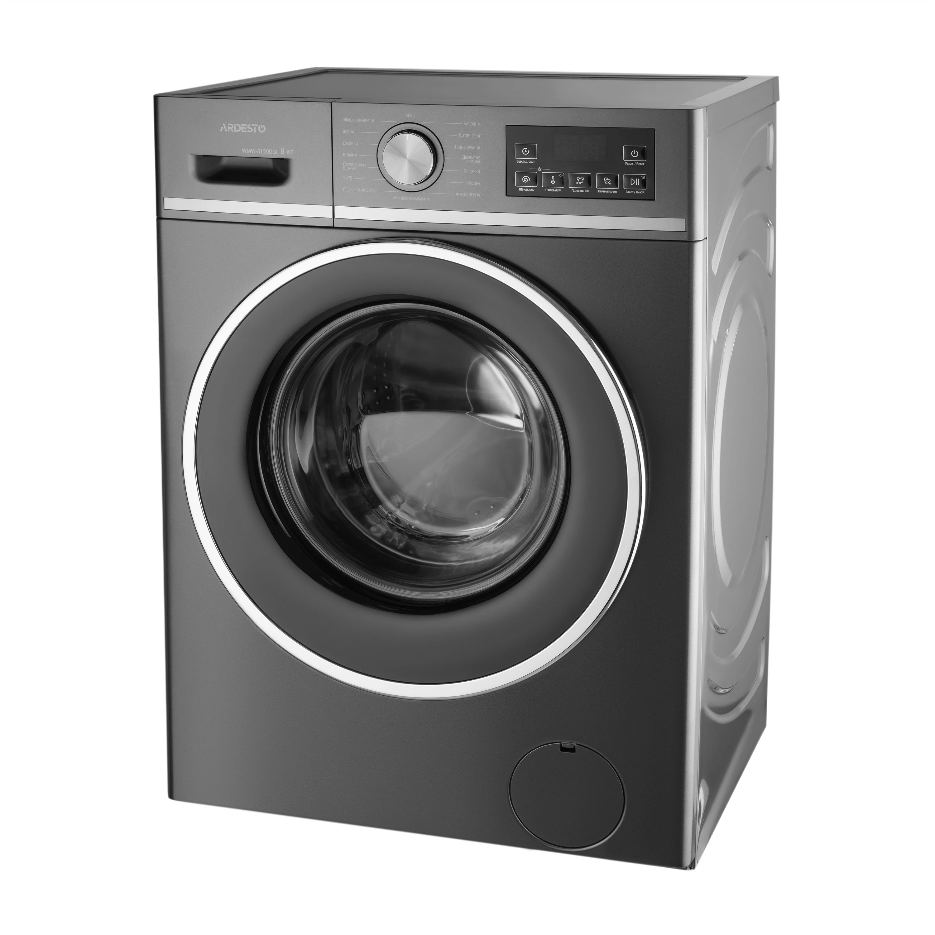 Пральна машина ARDESTO фронтальна, 8кг, 1200, А+++, 55см, дисплей, пара, інвертор, сірий