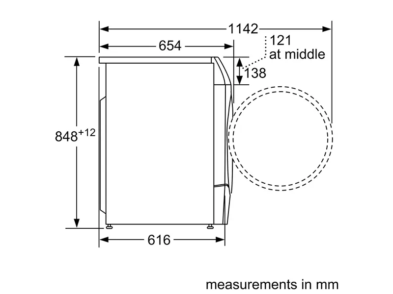 * Глибина при відкритих на 90° дверцятах: 1142 мм