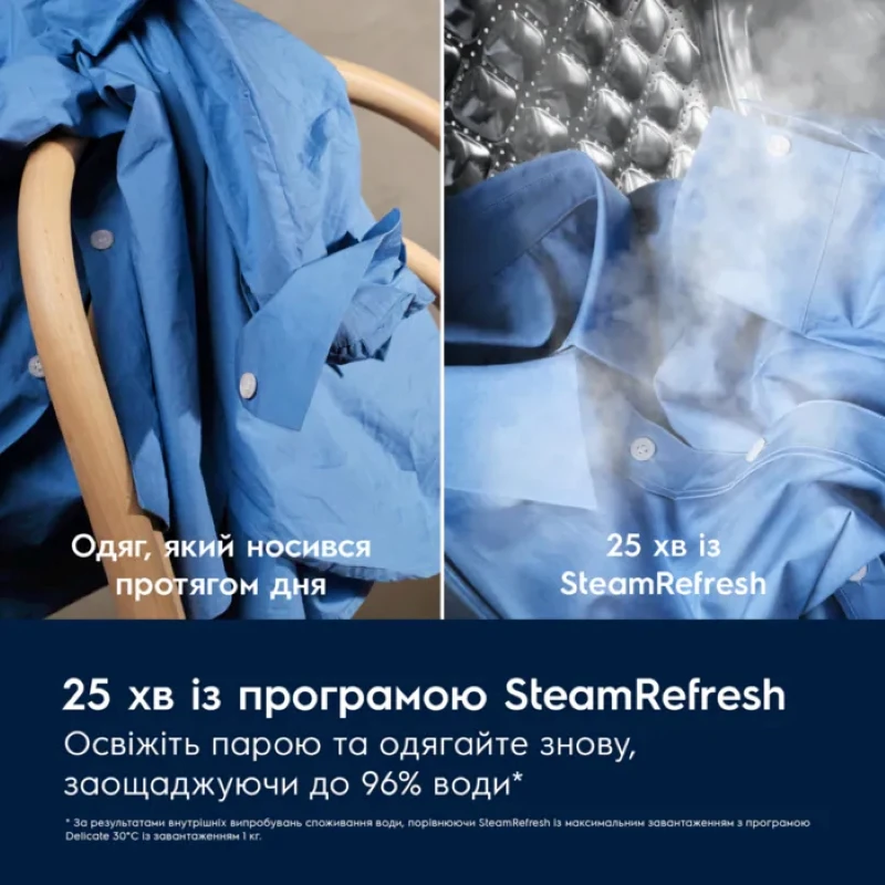 Пральна машина Electrolux EW7F3684UU з технологією SteamCare освіжає речі парою за 25 хвилин, зменшує складки та усуває запахи, заощаджуючи до 96% води. UniversalDose активує капсули PODS швидше. QuickCare 69 хв забезпечує ефективне прання при 30 °C. CareDrum дбайливо поводиться з тканинами, а SensiCare автоматично підбирає параметри під завантаження.