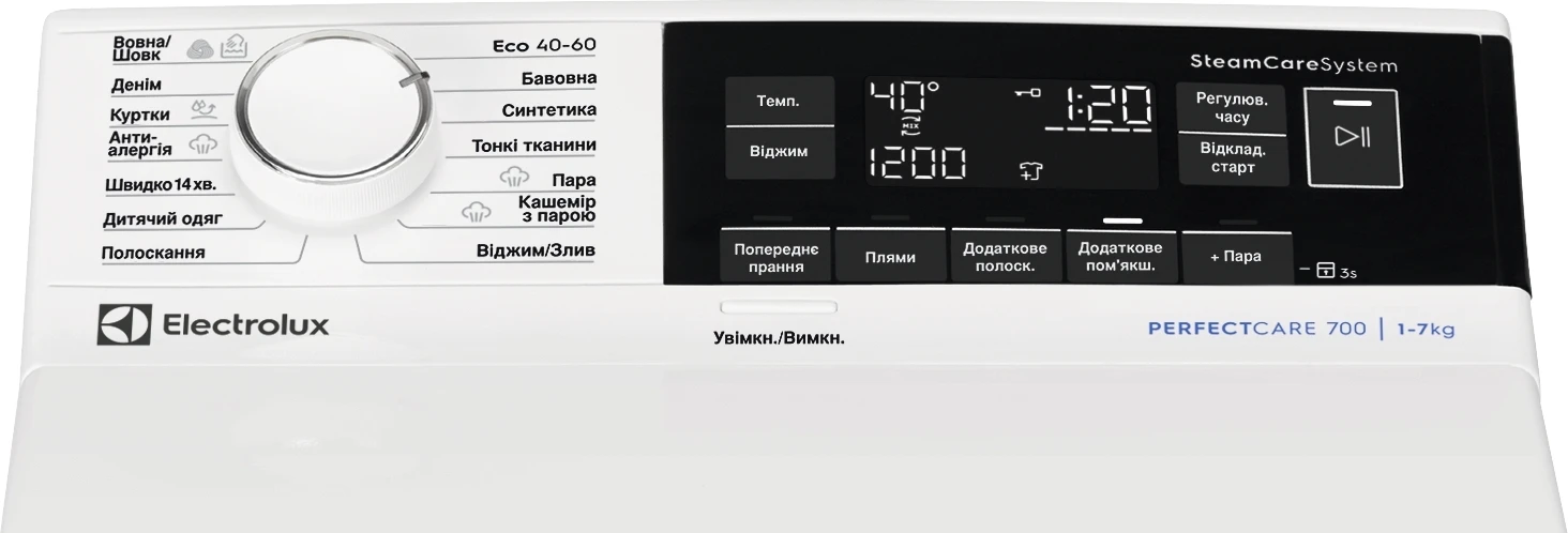 Пральна машина Electrolux вертикальна, 7кг, 1300, A, 60см, дисплей, пара, інвертор, білий