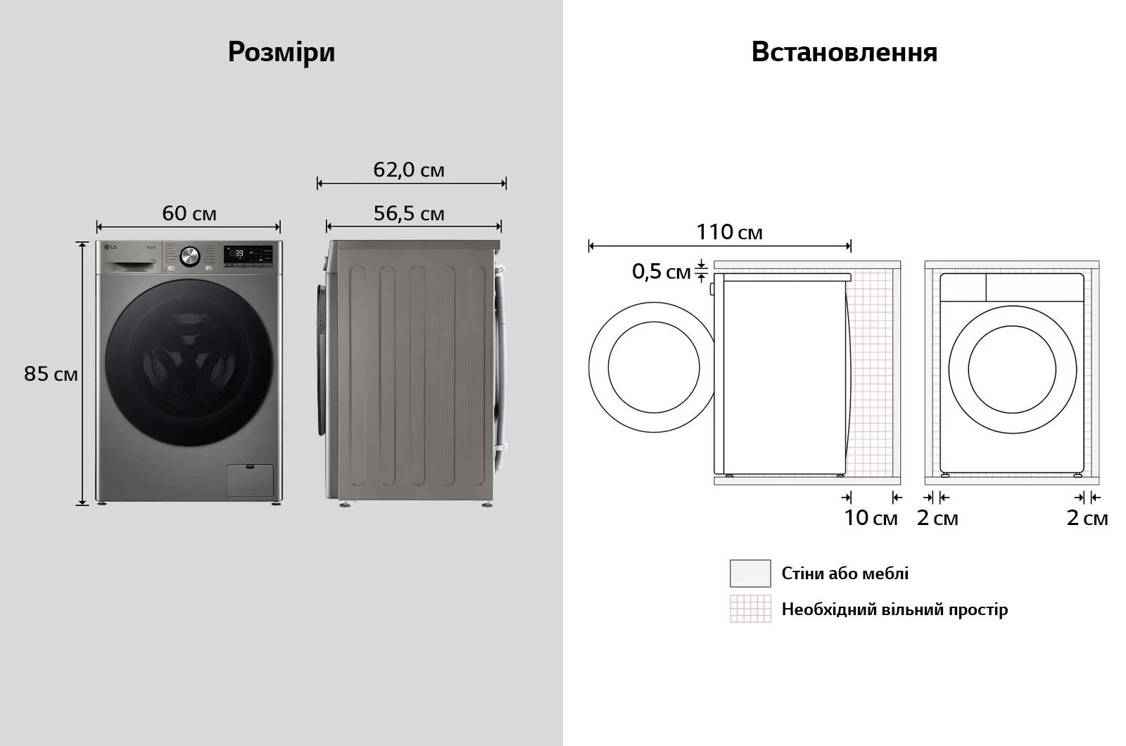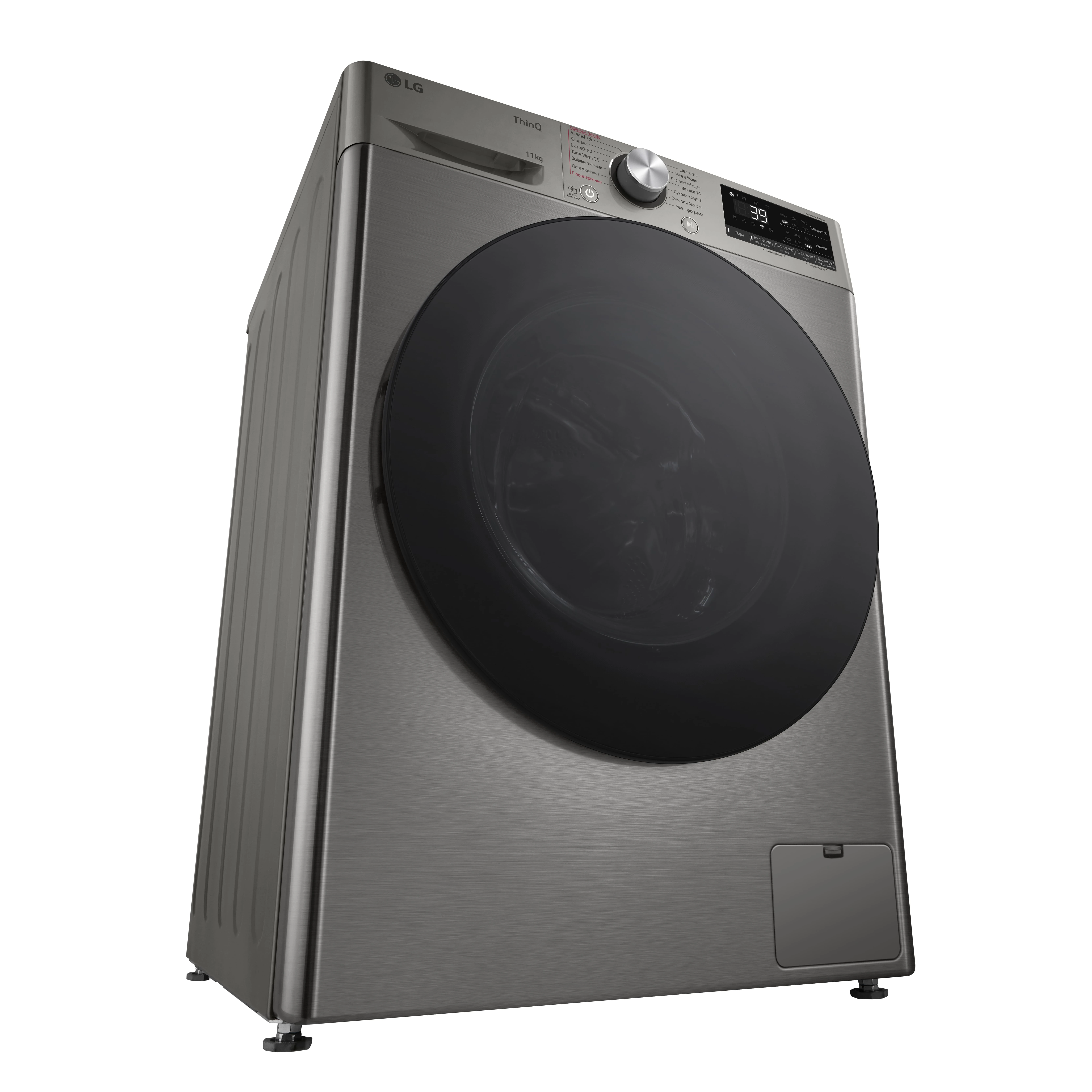Пральна машина LG фронтальна, 11кг, 1400, A, 57см, дисплей, пара, інвертор, сріблястий