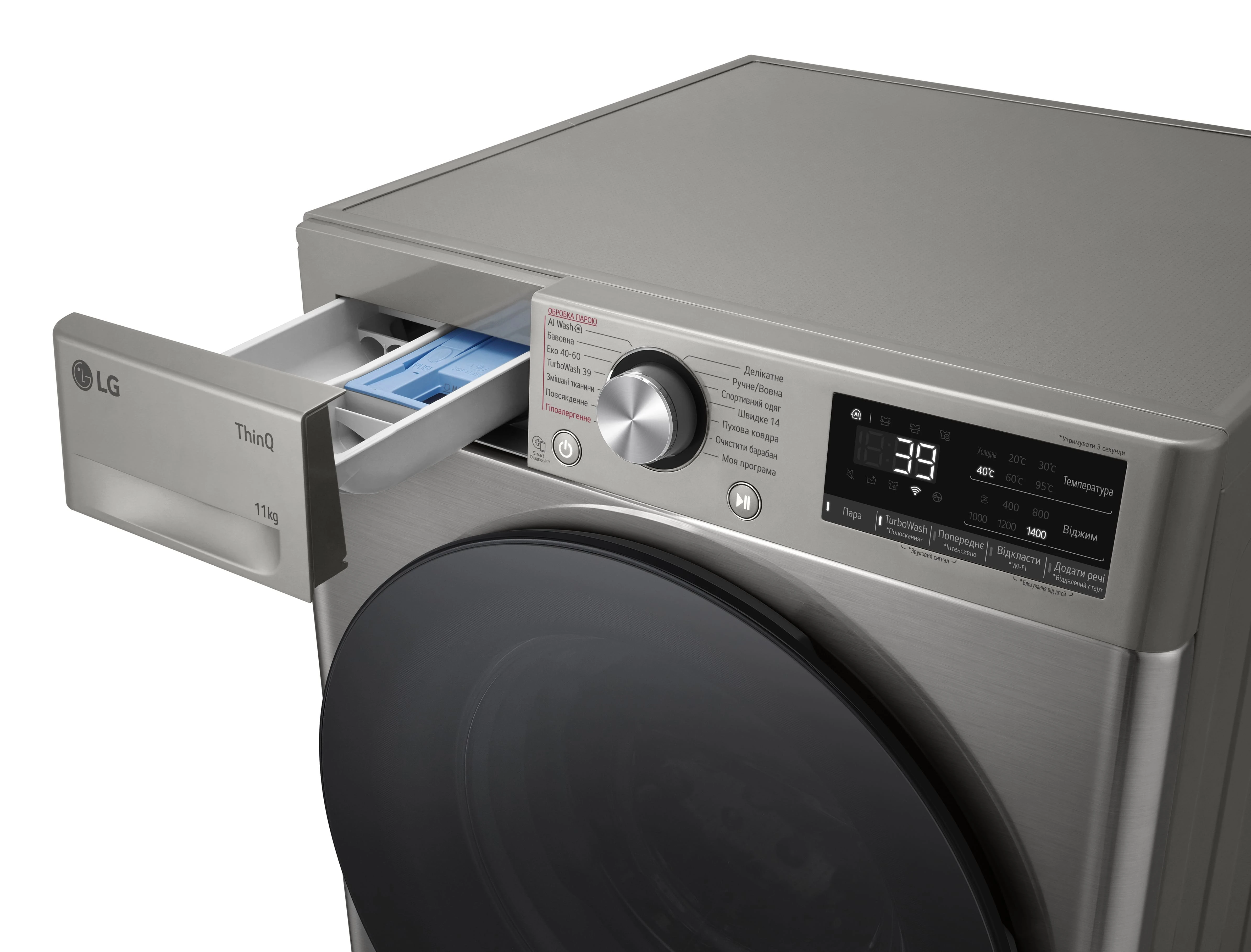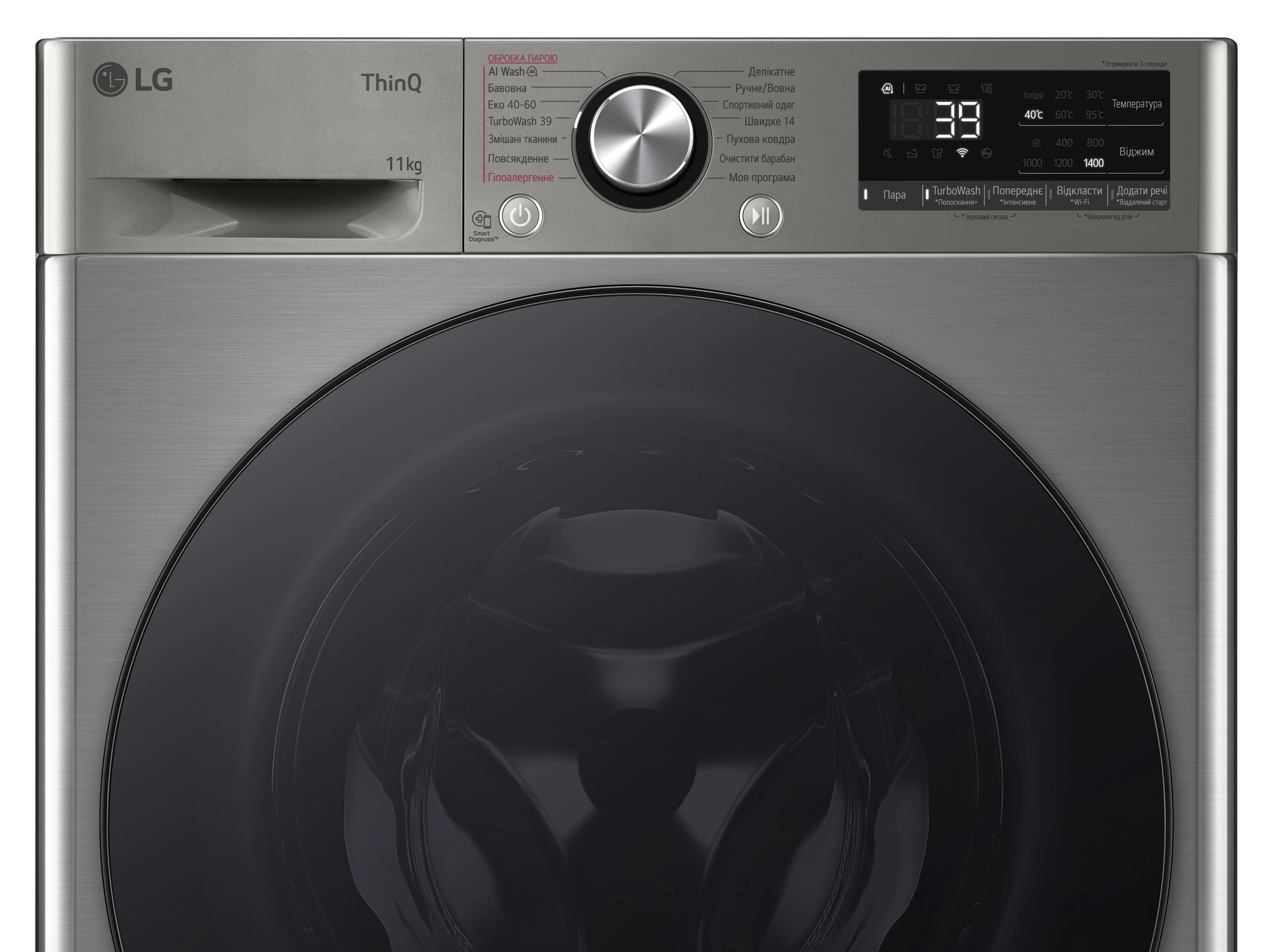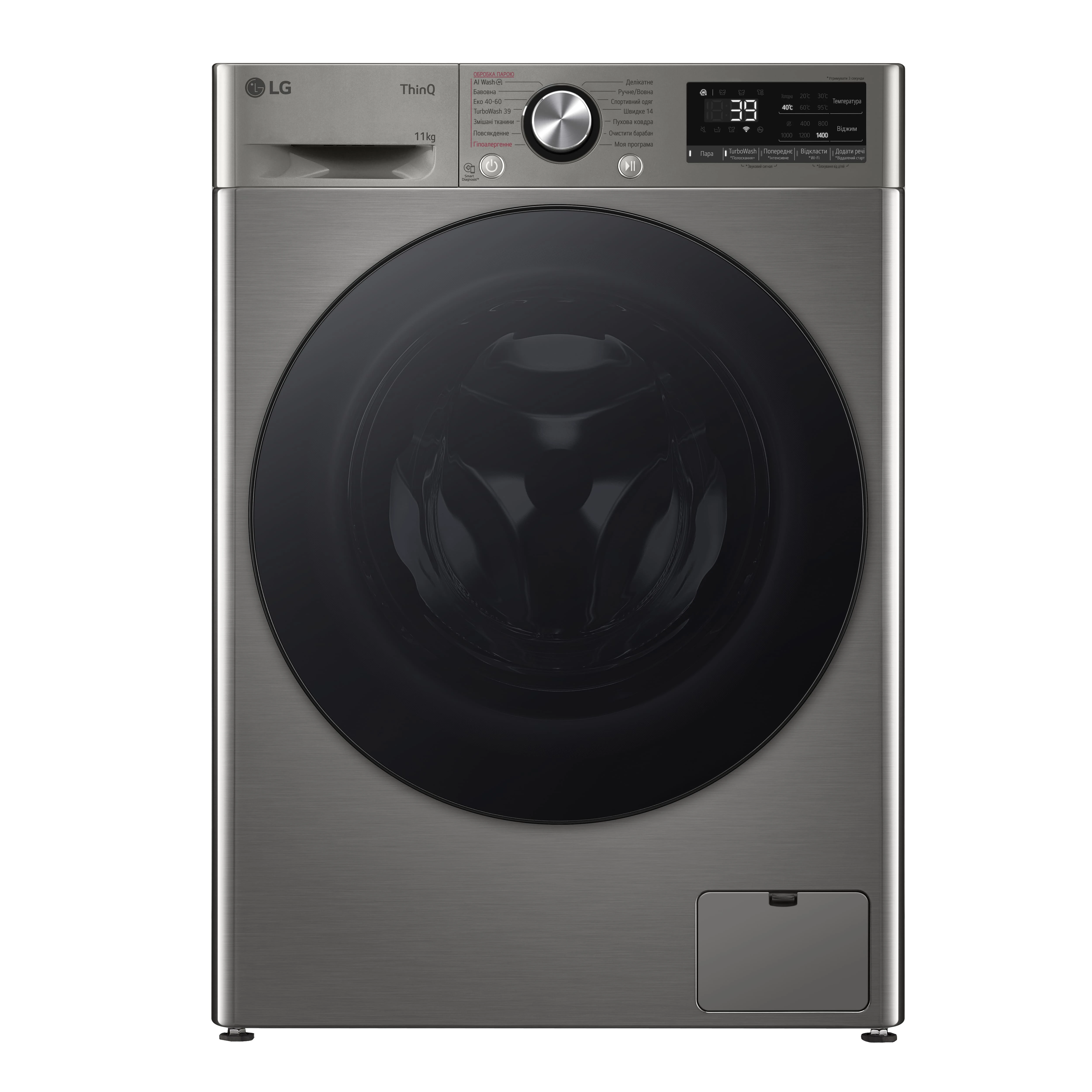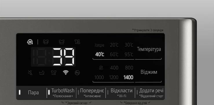 - Основные программы Бавовна; Спортивний одяг; Моя програма; Гіпоалергенне прання; Очищення барабана; TurboWash 39; Еко 4