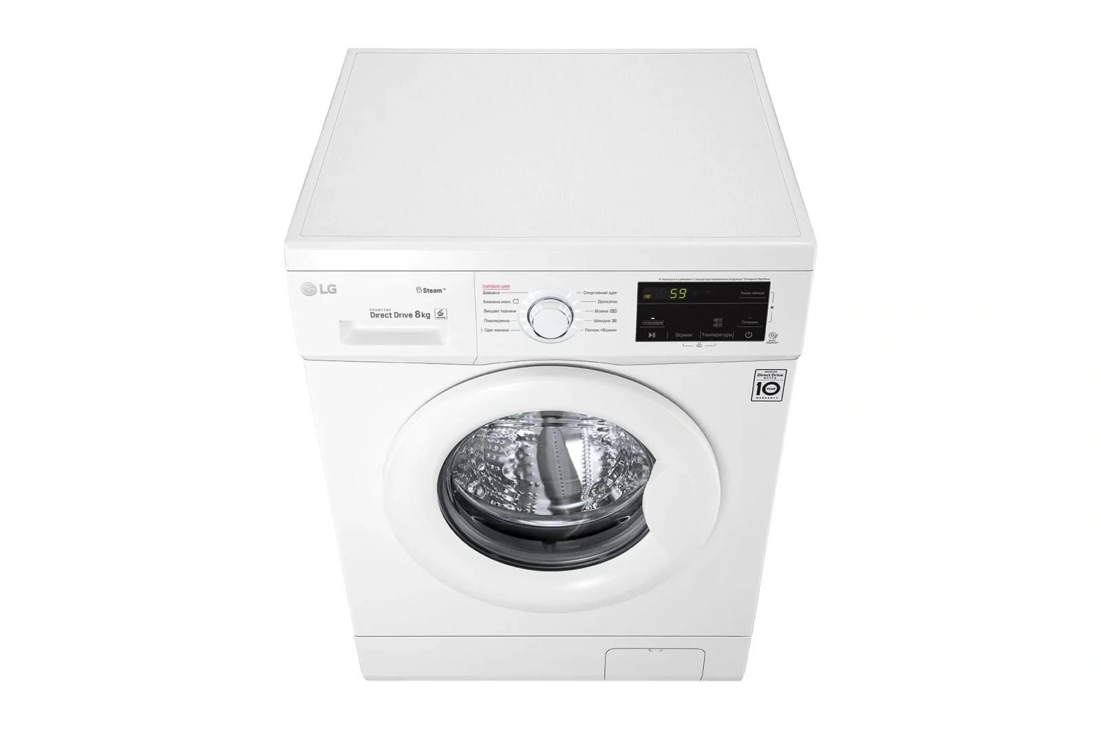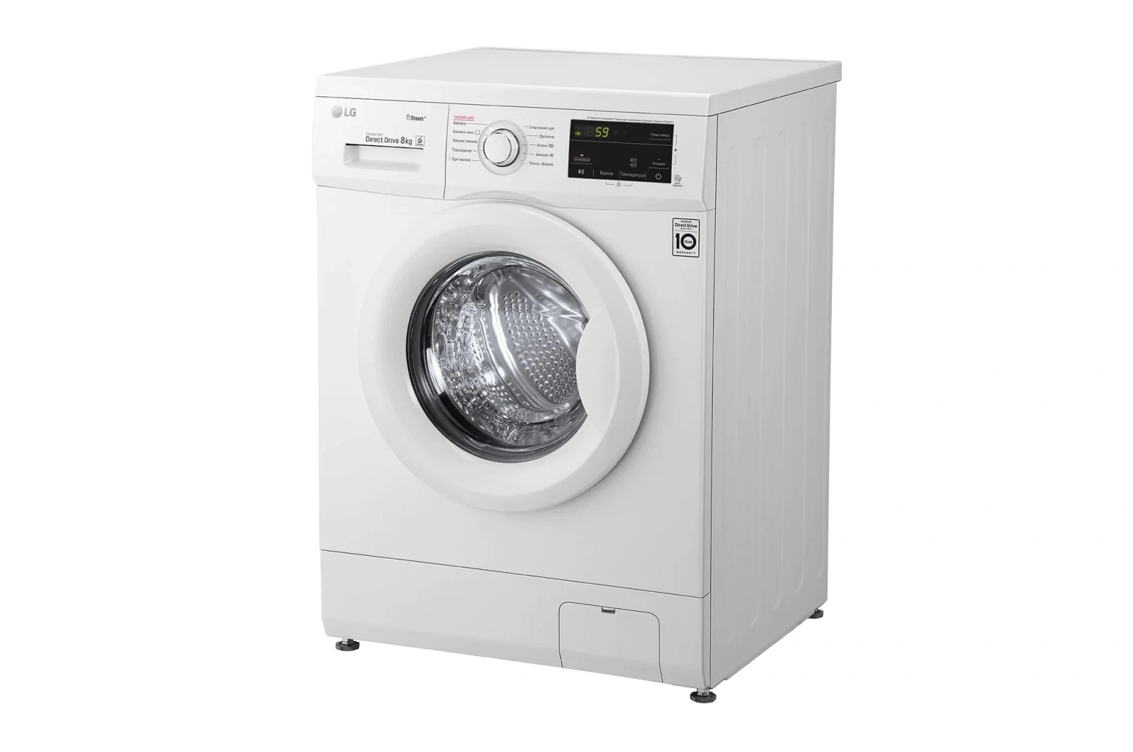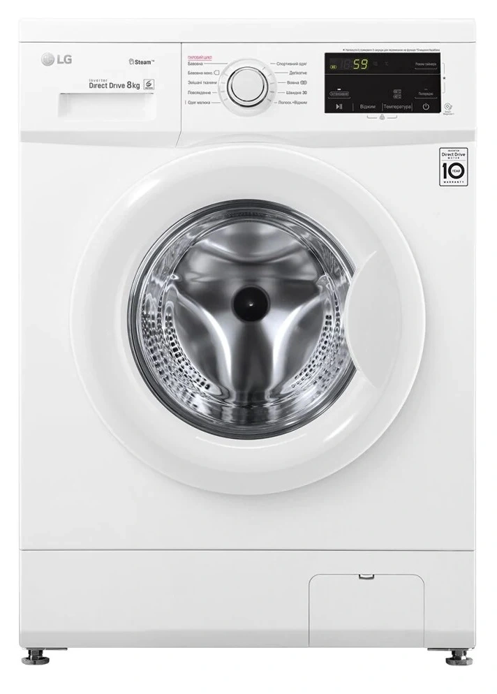 Пральна машина LG фронтальна, 8кг, 1400, A+++, 55см, дисплей, пара, інвертор, білий