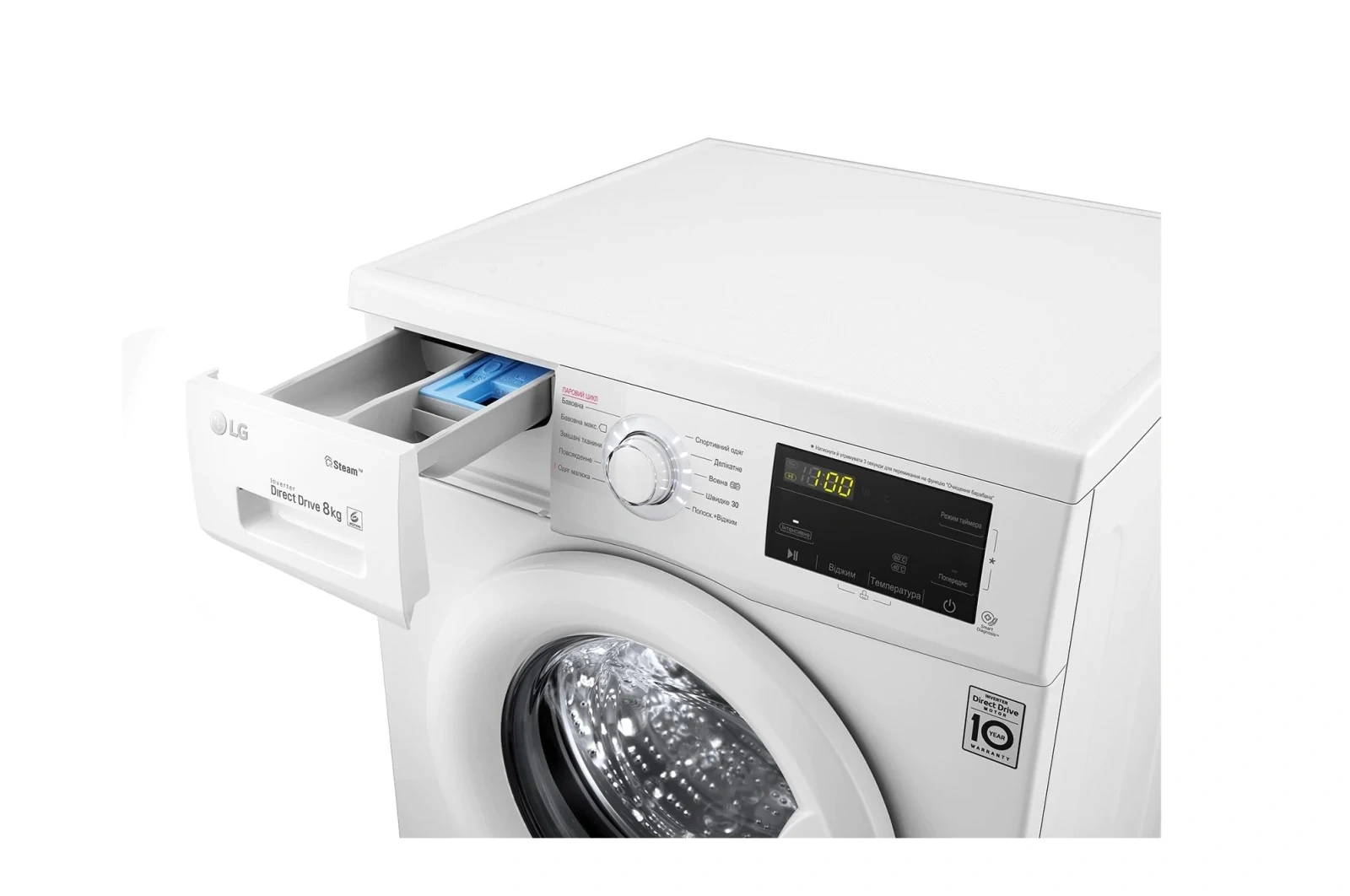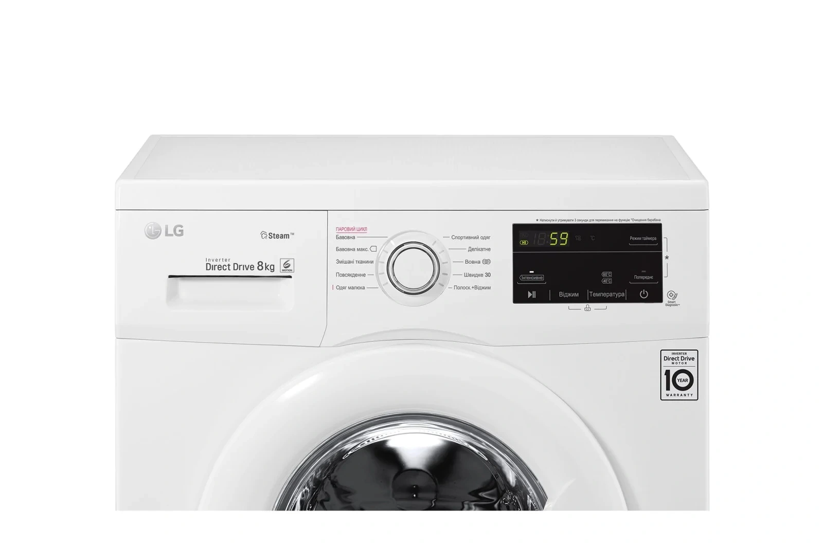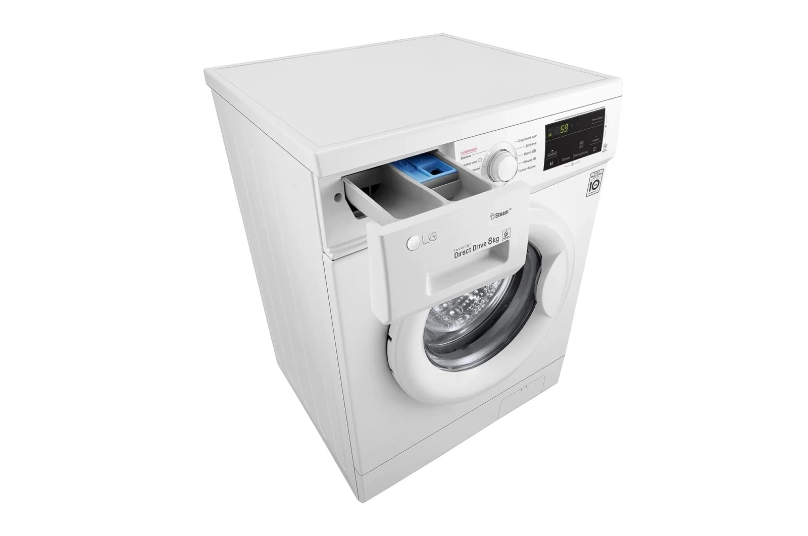 Пральна машина LG фронтальна, 8кг, 1400, A+++, 55см, дисплей, пара, інвертор, білий