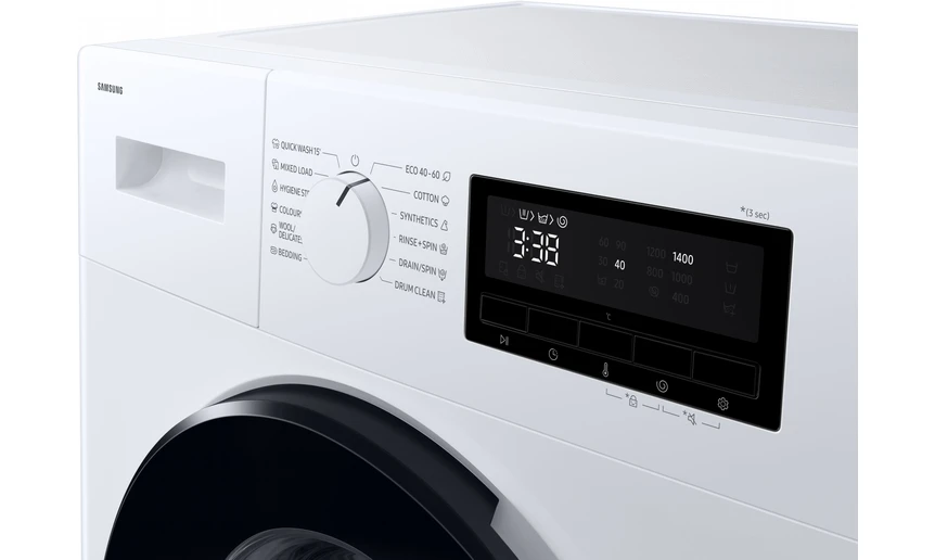 Пральна машина пропонує 12 програм прання: Eco 40–60, швидке прання за 15 хвилин, прання постільної білизни, бавовни, кольорових і змішаних речей, делікатних тканин, синтетики та шерсті. Додатково доступні режими полоскання + віджим, окремий віджим, очищення барабана та гігієнічний пар. Серед додаткових функцій — відкладений старт, що дозволяє налаштувати цикл на зручний час.