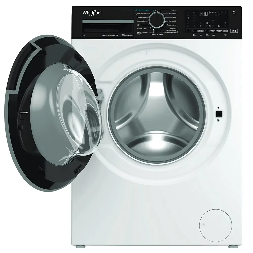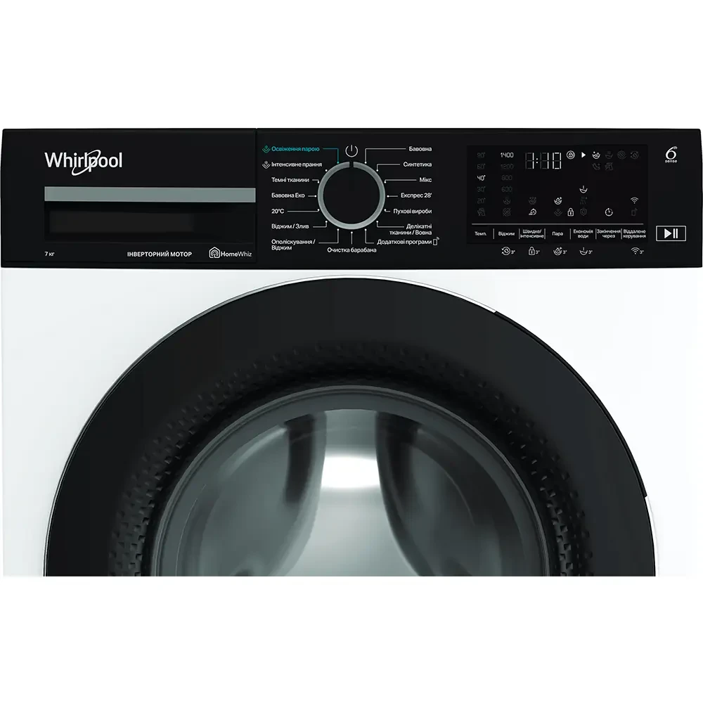 Пральна машина Whirlpool фронтальна, 7кг, 1400, A, 49.6см, дисплей, пара, інвертор, люк чорний, біли