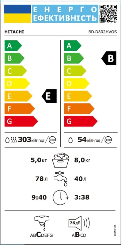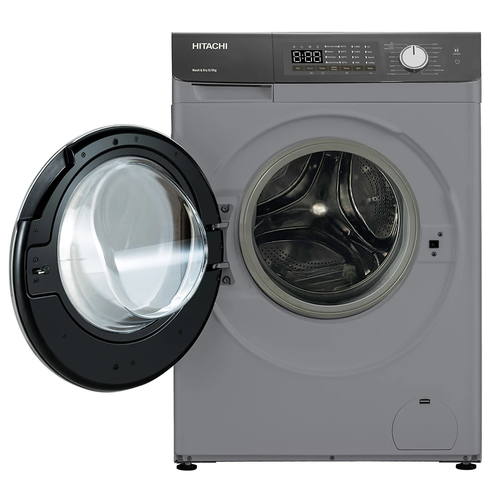 Прально-сушильна машина Hitachi фронтальна, 8(5)кг, 1400, A, 60см, дисплей, пара, інвертор, cрібляст