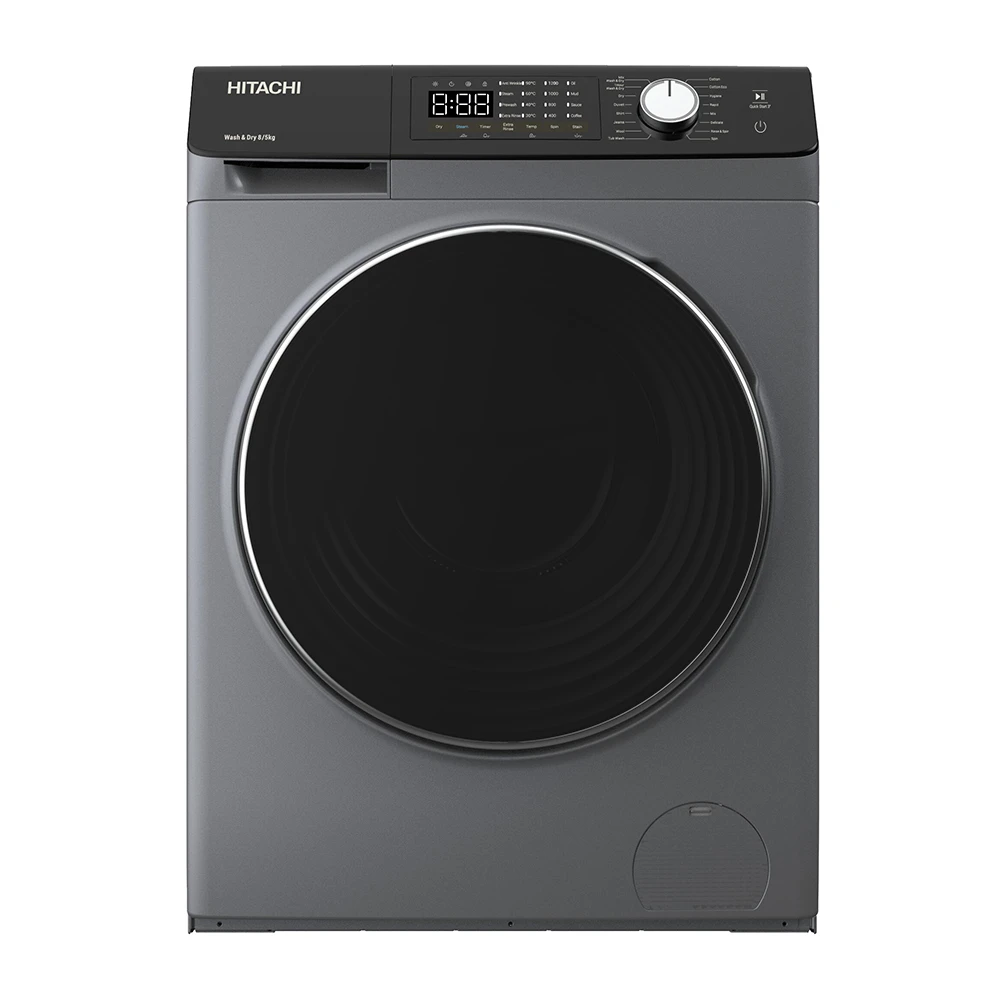 Прально-сушильна машина Hitachi BD-D802HVOS поєднує ефективність прання, сушіння та сучасний дизайн. Завдяки завантаженню 8 кг для прання та 5 кг для сушіння вона забезпечує повний догляд за білизною в одному циклі. Інверторний двигун працює тихо й енергоощадно, а парова обробка та гігієнічна програма видаляють бактерії та зберігають свіжість речей. Темно-сріблястий корпус і чорний люк гармонійно доповнюють сучасний інтер’єр.