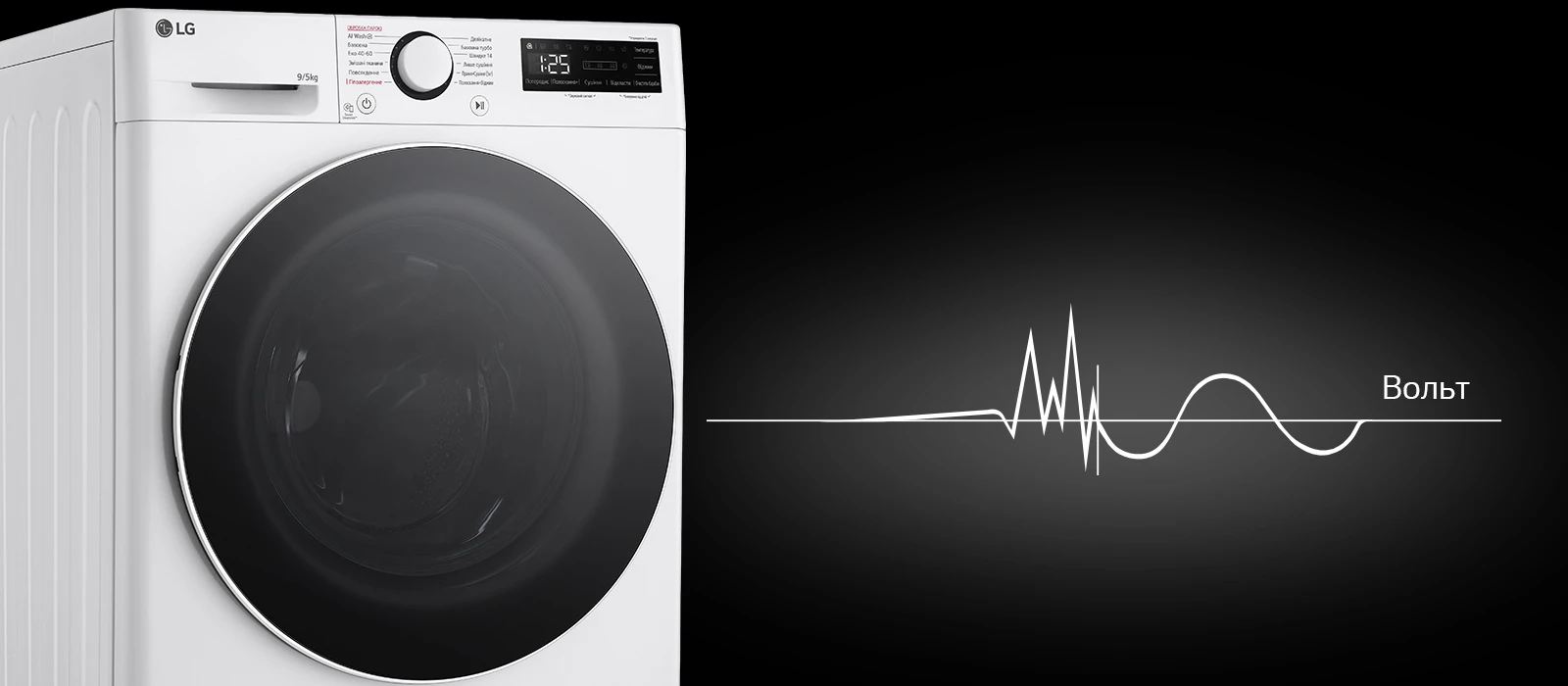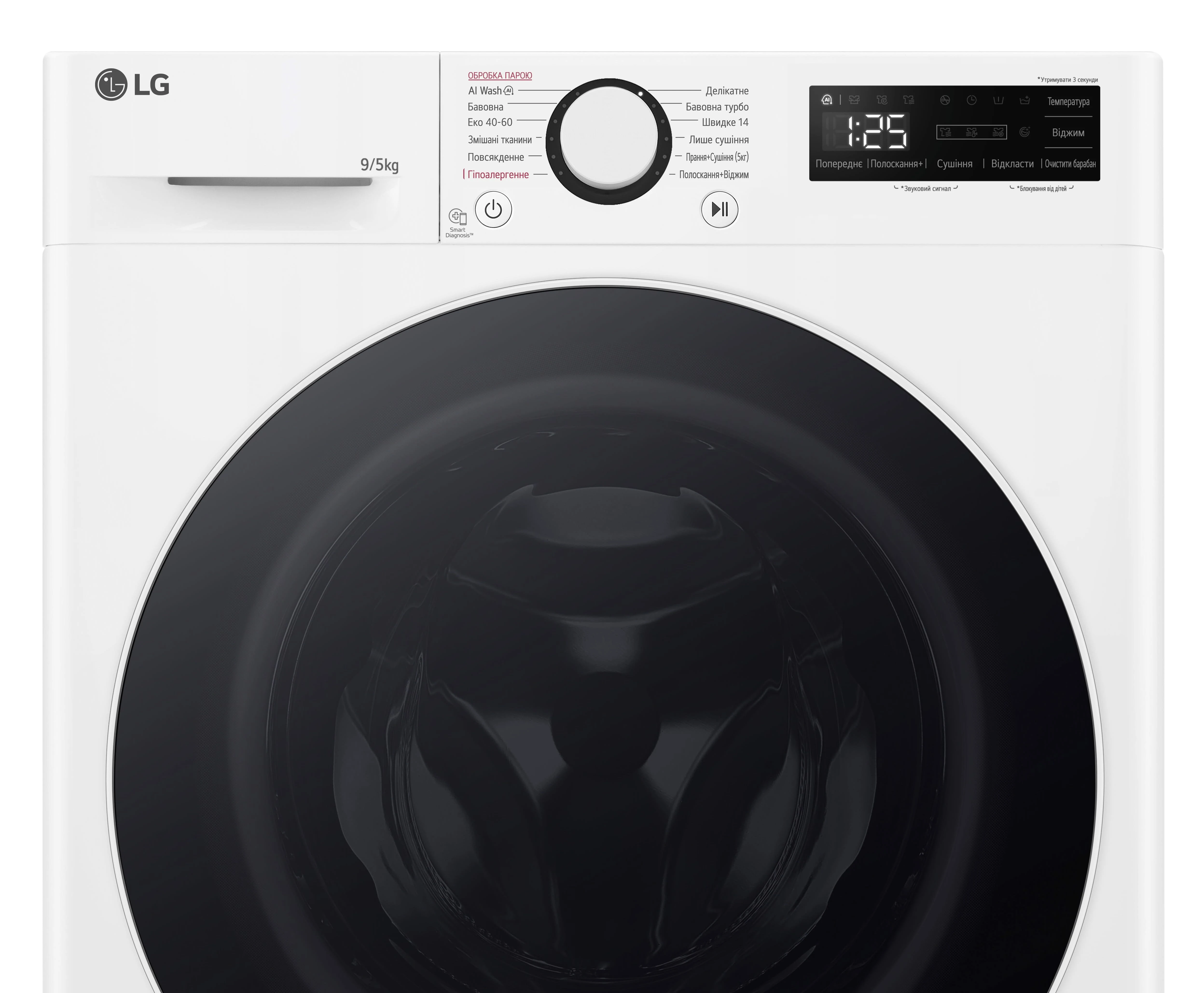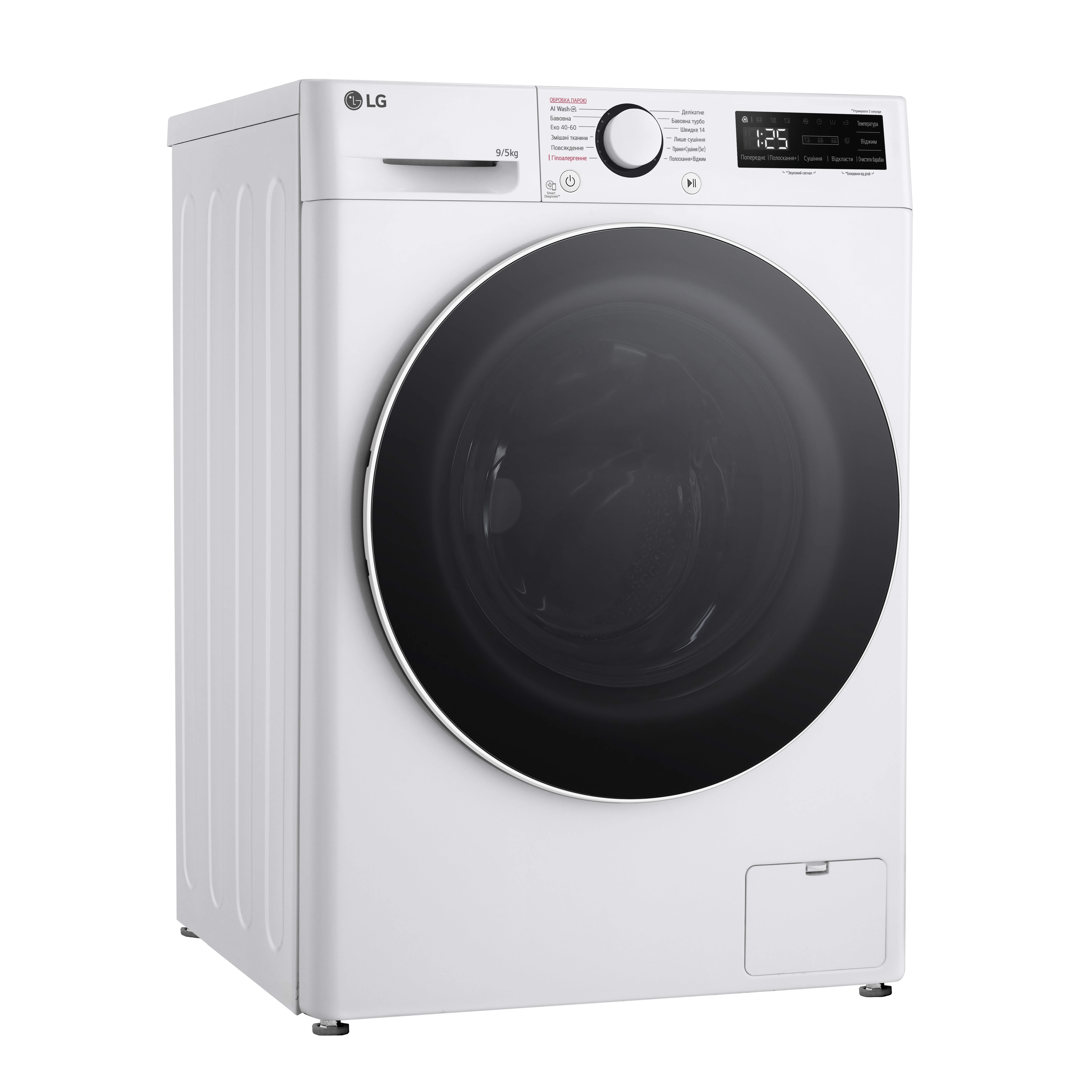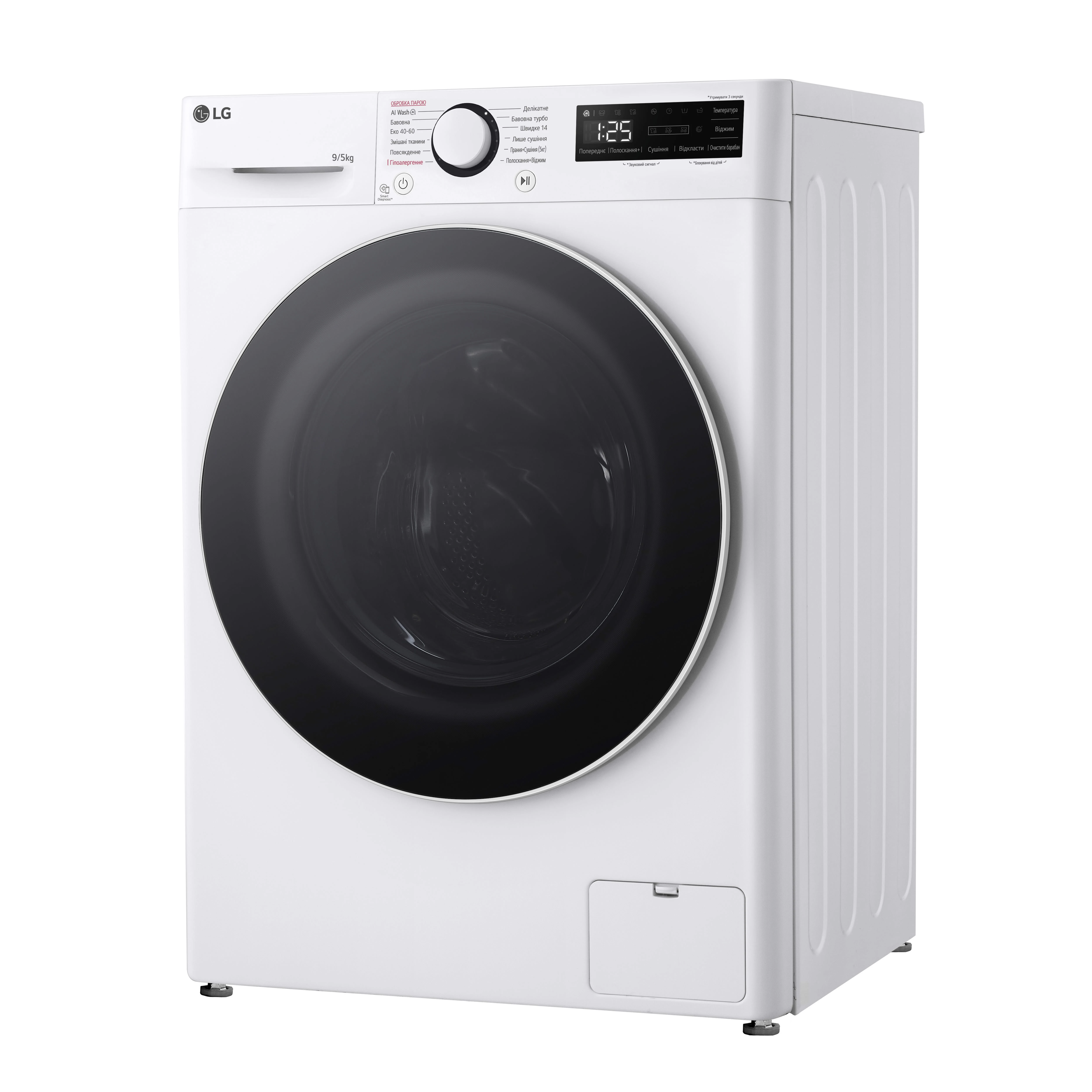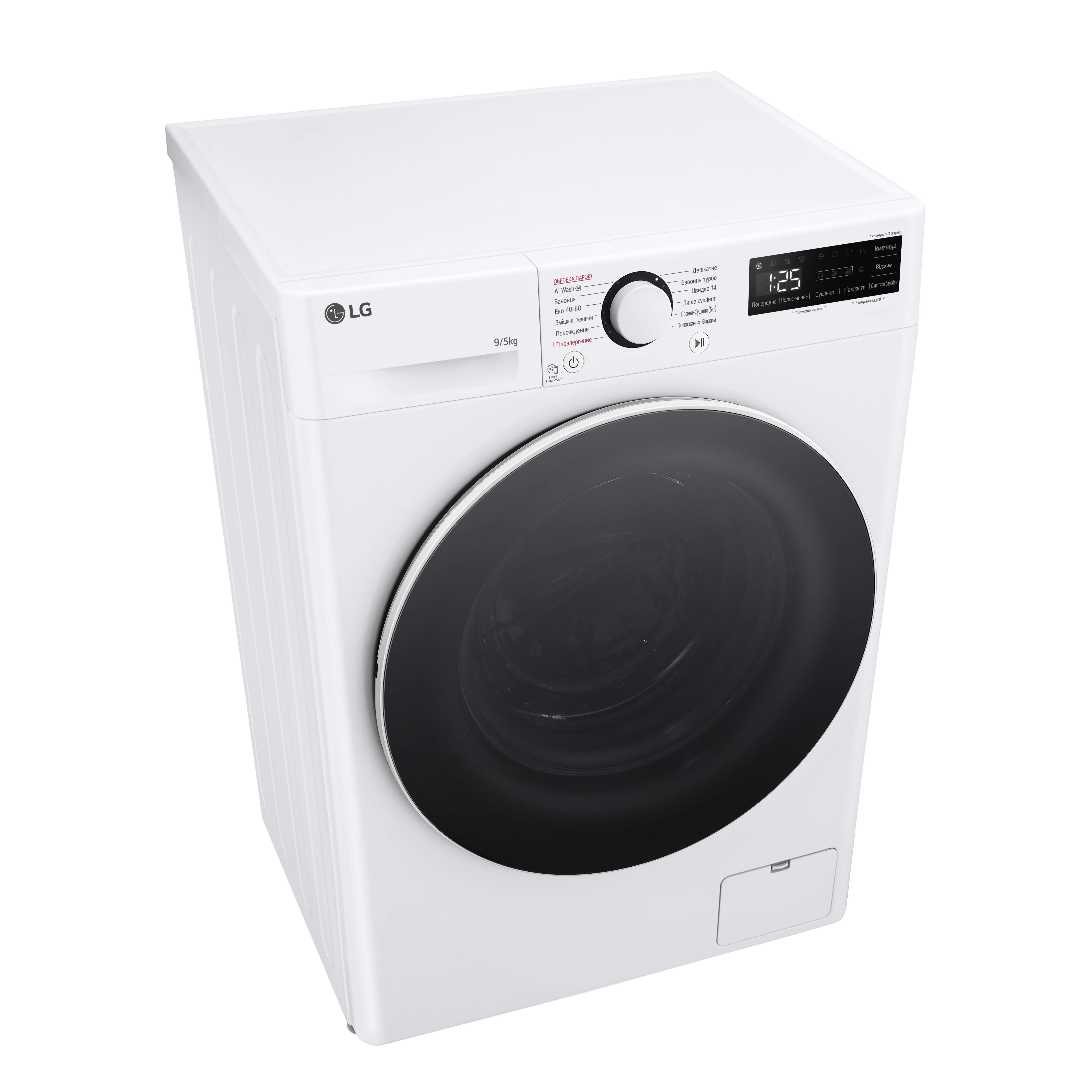 Прально-сушильна машина LG фронтальна, 9(5)кг, 1200, А, 48см, дисплей, пара, інвертор, білий