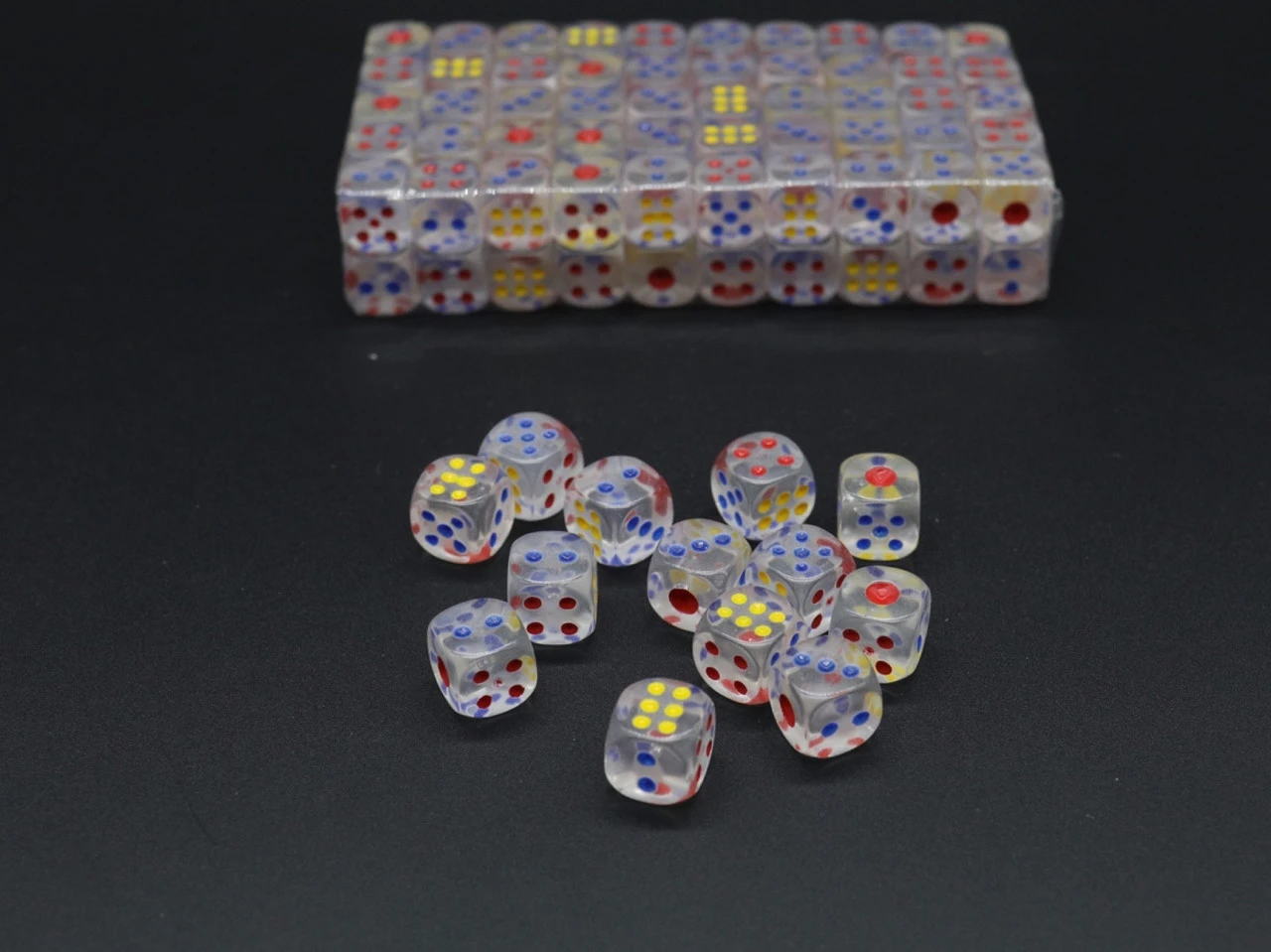 Игральные кубики кости пластиковые, с цветными пятнышками, Цвет «прозрачный»