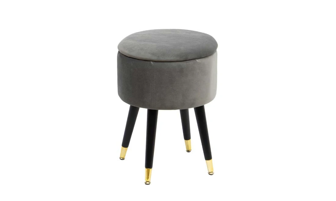Пуф Джой м’який сірий з золотими насадками