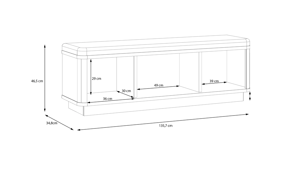 Завдяки м’якому сидінню та відкритим полицям для зберігання він підходить для використання у спальні, передпокої або вітальні, забезпечуючи зручність і додаткову функціональність.