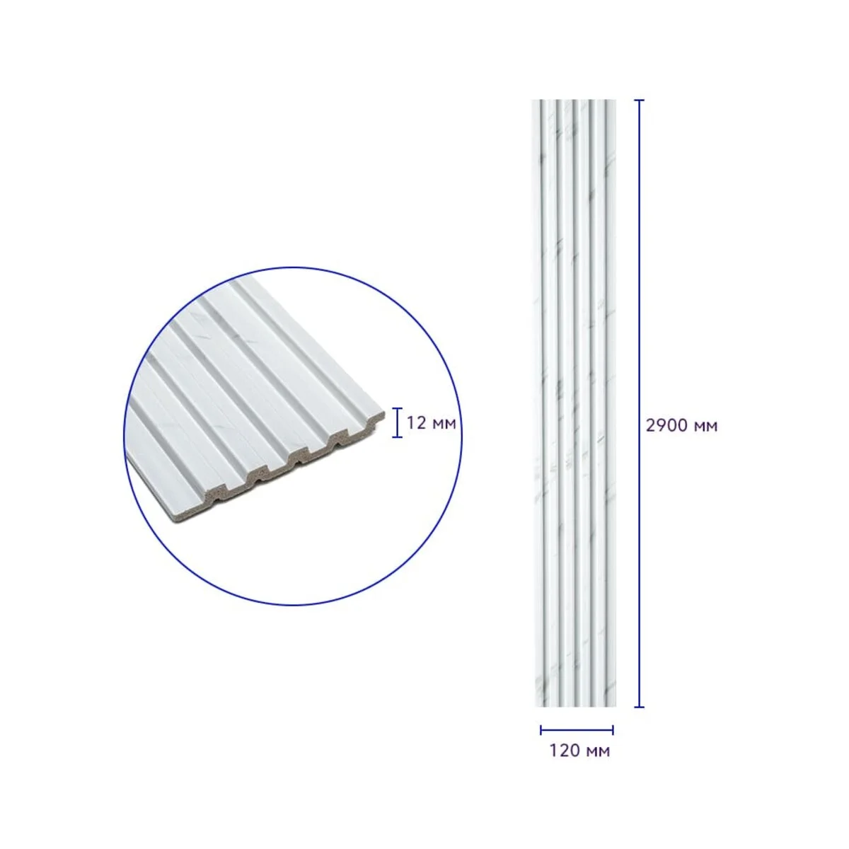 Рейка декоративная PS 2900х120х12мм Белый мрамор SW-00002134