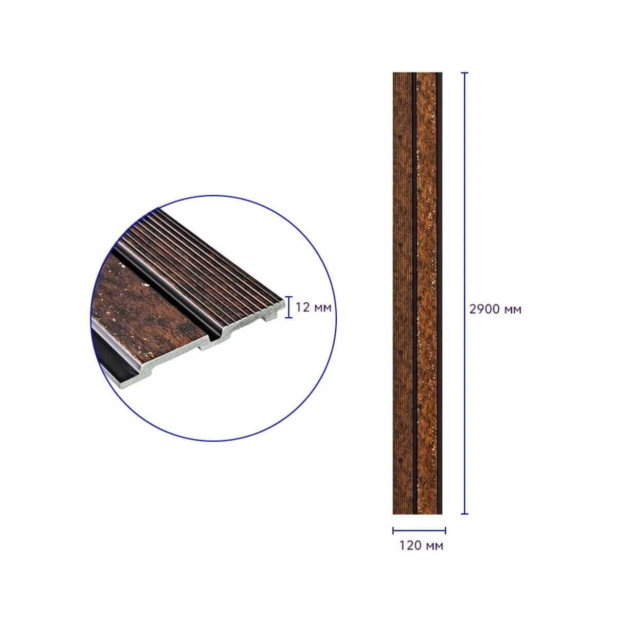 Рейка декоративная PS 2900х120х12мм Медный с золотыми вкраплениями SW-00001747