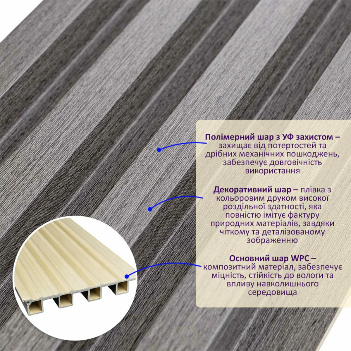 Рейка декоративна WPC стінова 3000х160х23мм Олов'яний SW-00001530