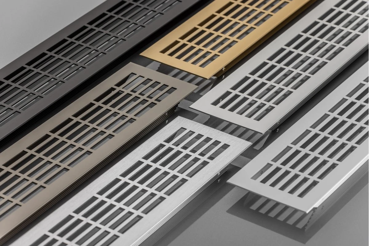 Вентиляційні решітки використовуються для забезпечення вентиляції простору під кухонними модулями. Це допомагає запобігти утворенню конденсату та накопиченню вологи, які можуть призвести до пошкодження меблів та підлоги. Вони можуть бути виготовлені з пластику, алюмінію або нержавіючої сталі, що забезпечує їхню довговічність та надійність