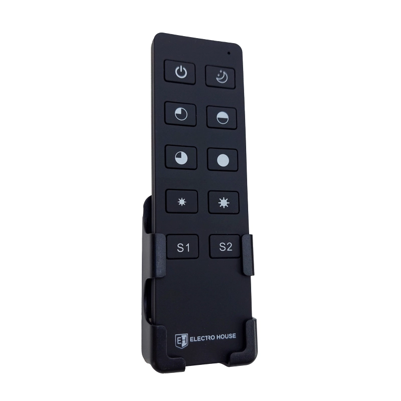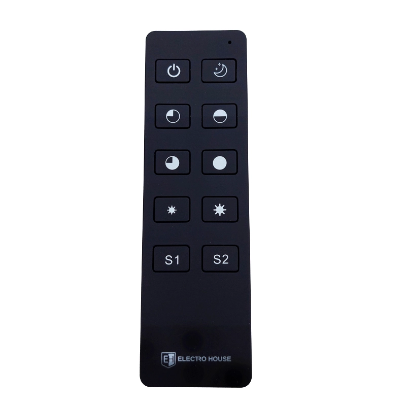 RF пульт 2.4G, черный EH-DMR от ElectroSpace — идеальное решение для удобного управления осветительными приборами в вашем доме. Этот дистанционный пульт обеспечивает возможность плавной регулировки уровня освещения, а также быстрого переключения между разными режимами яркости (ночной режим, 25%, 50%, 75% и 100%). Благодаря функции сохранения индивидуальных настроек яркости, вы сможете мгновенно применить их в нужный момент.
